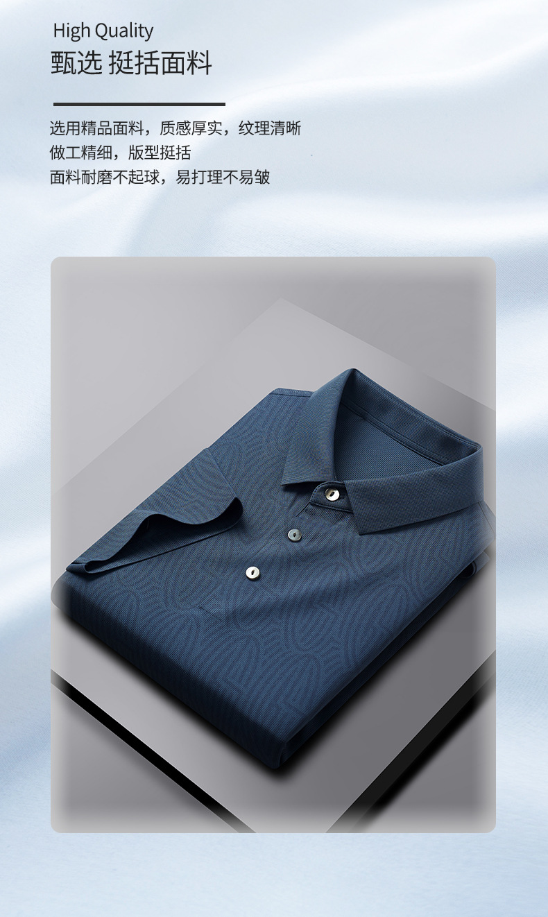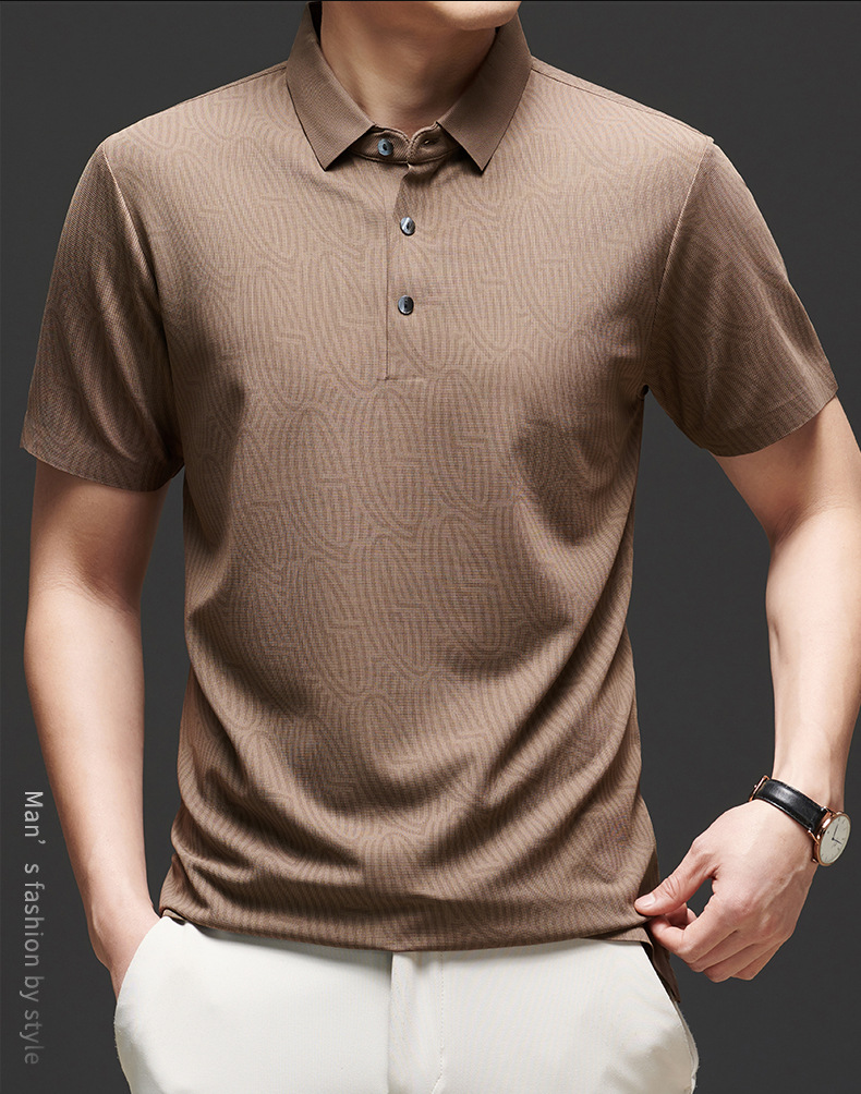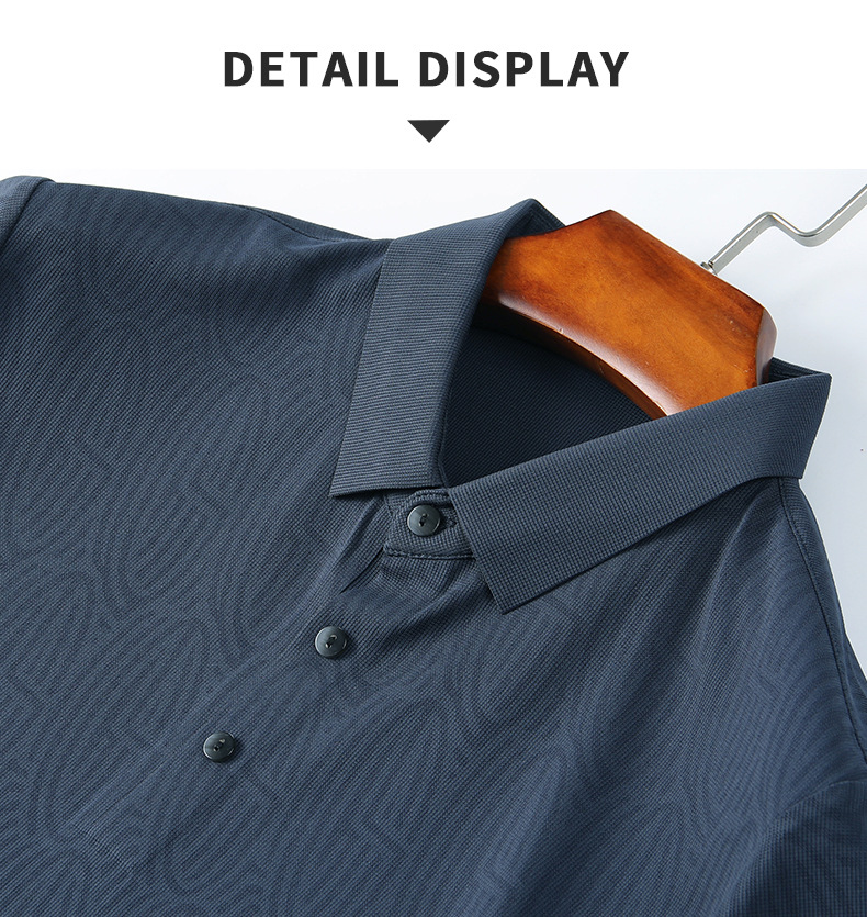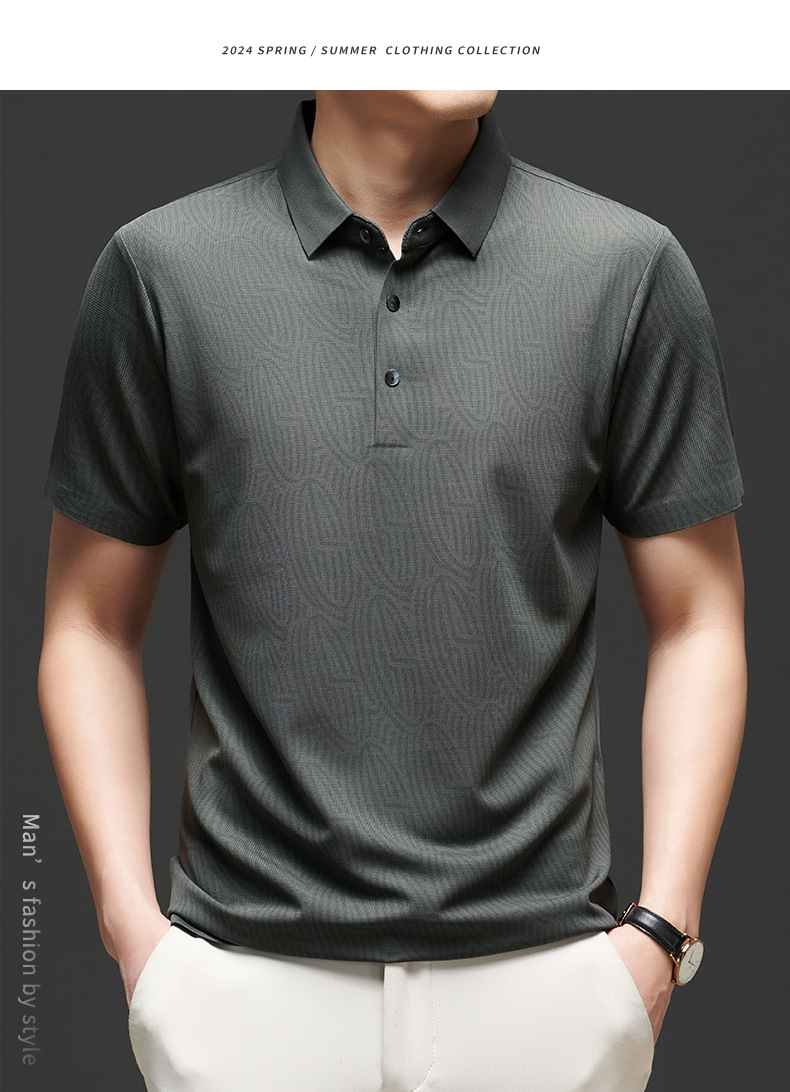하이 엔드 원활한 자카드 아이스 실크 간단한 폴로 셔츠 짧은 소매 여름 남성 비즈니스 캐주얼 헴 분할 아빠 복장스토어 가기