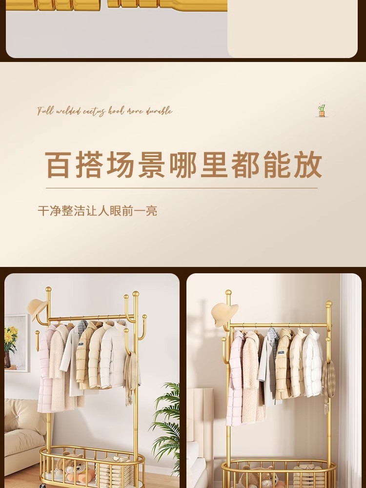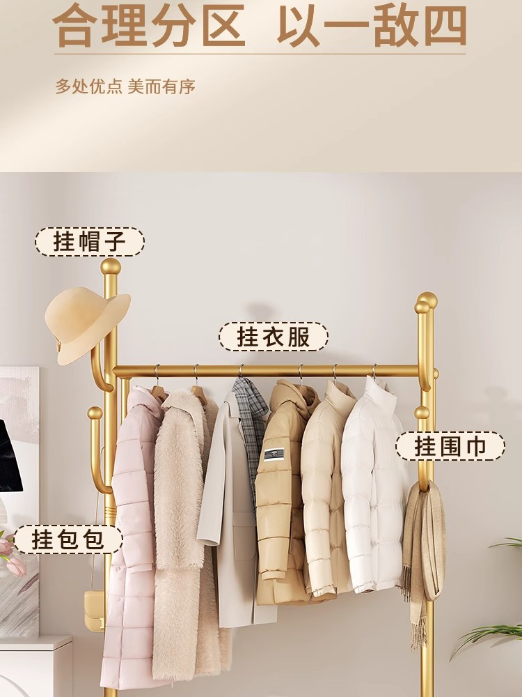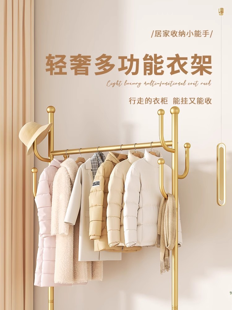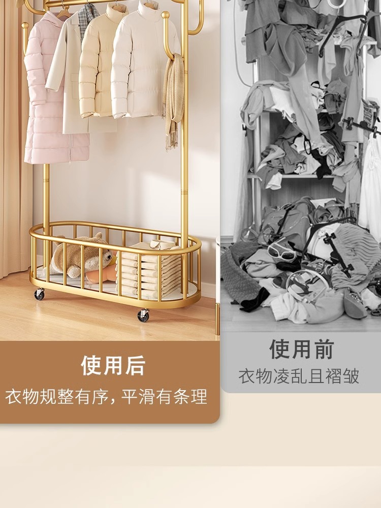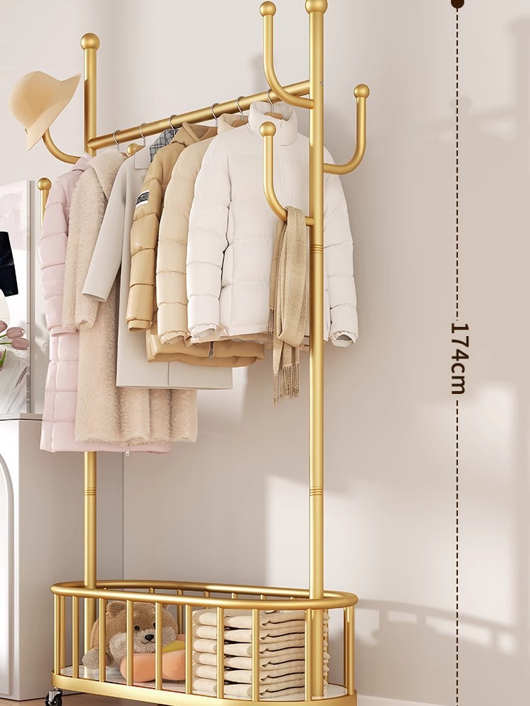 가벼운 고급 이동식 코트 랙 바퀴 거실 가정용 의류 보관 랙 현대 간단한 침실 바닥 걸이