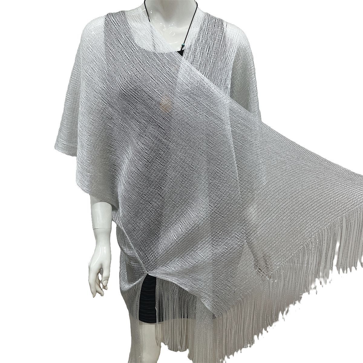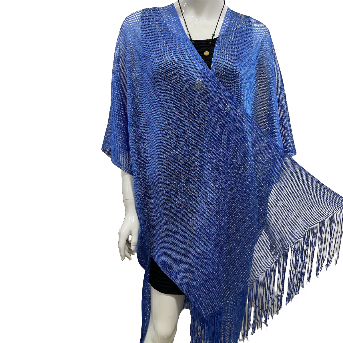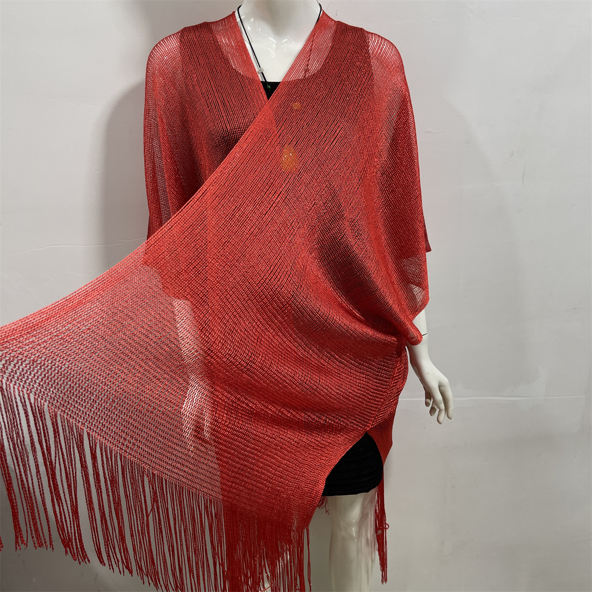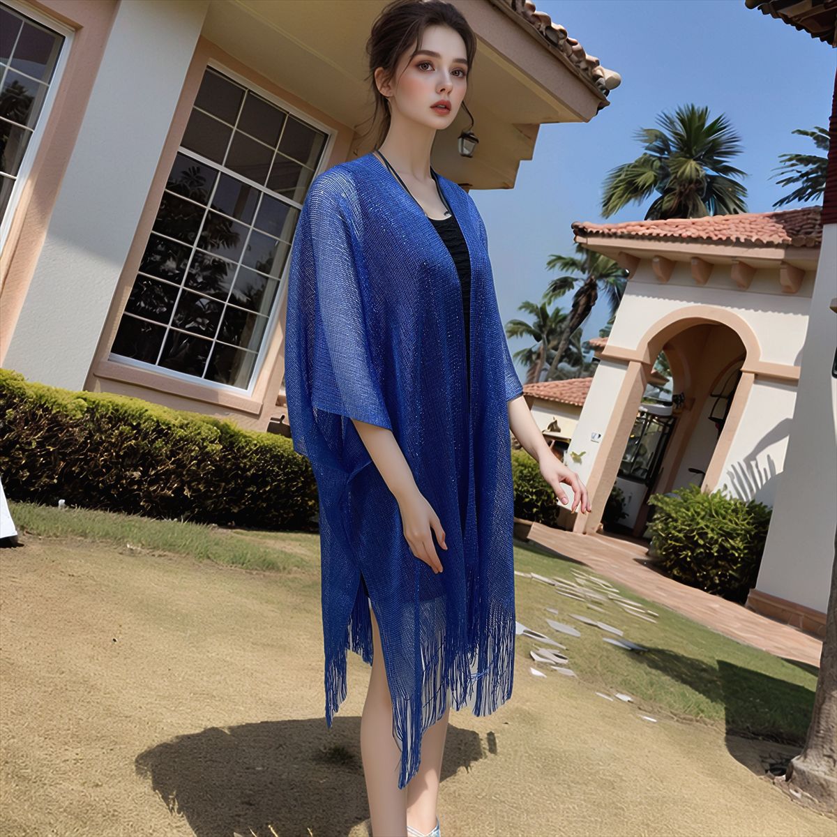 金银丝流苏披风女纯色夏季透明薄款披肩