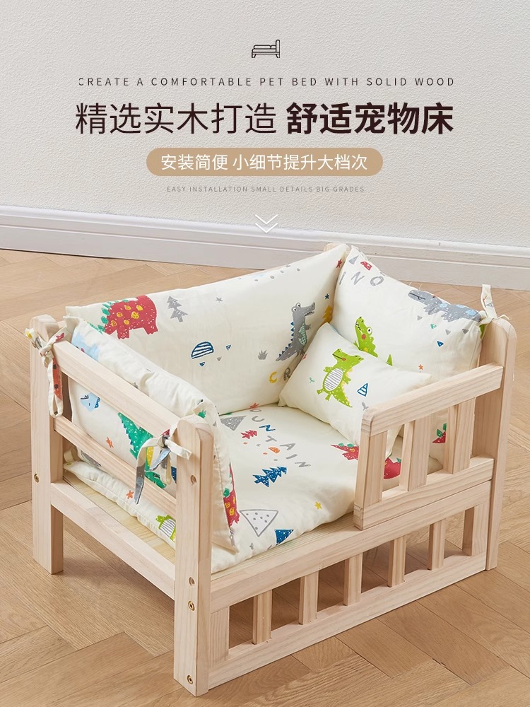 사계절용 원목 강아지 침대, 테디 소형견 애완동물 침대, 여름용 고양이 침대, 탈부착 및 세탁 가능한 고양이 침대스토어 가기