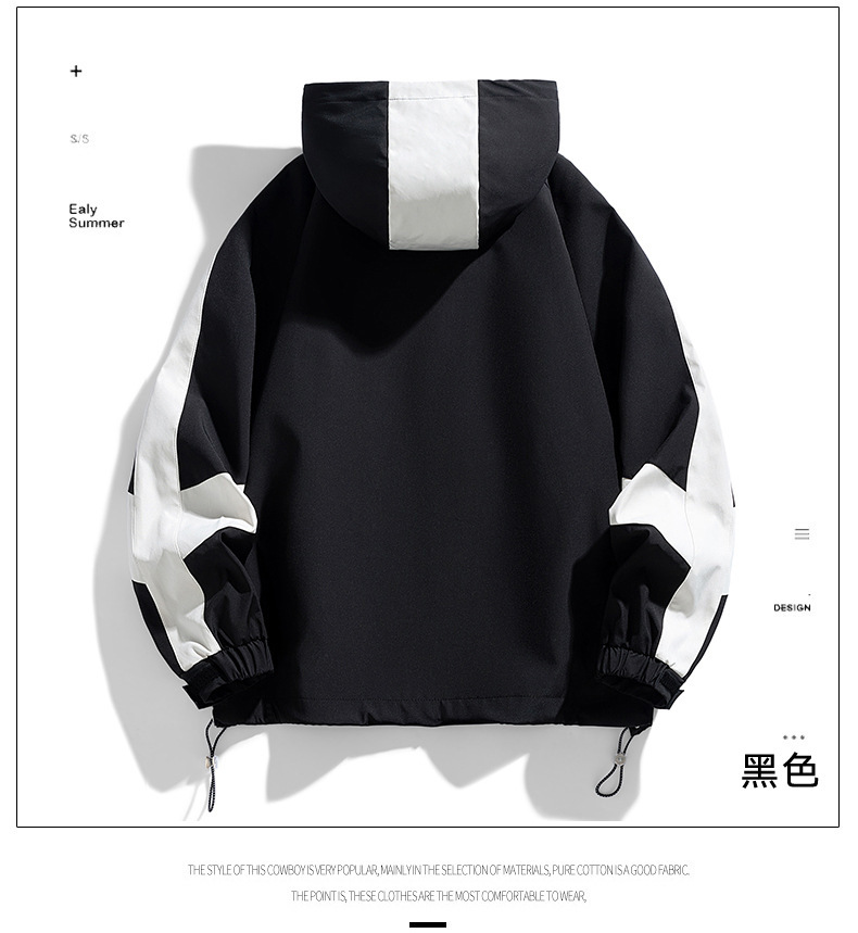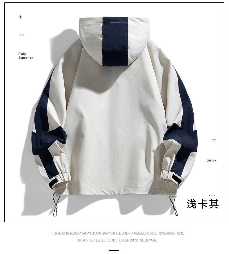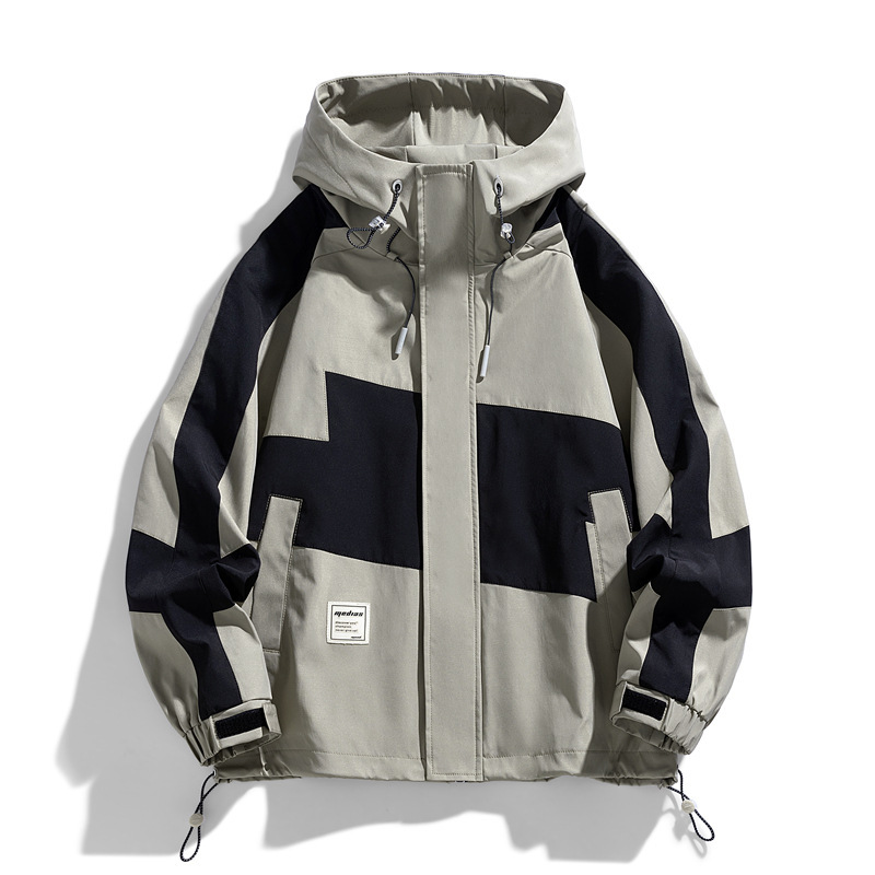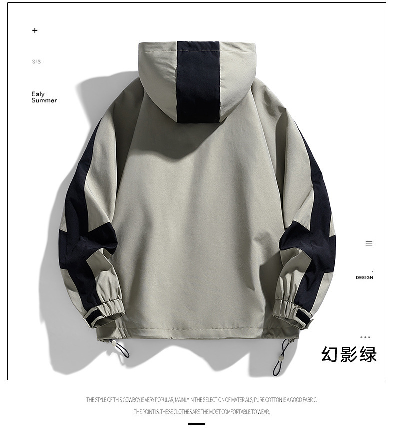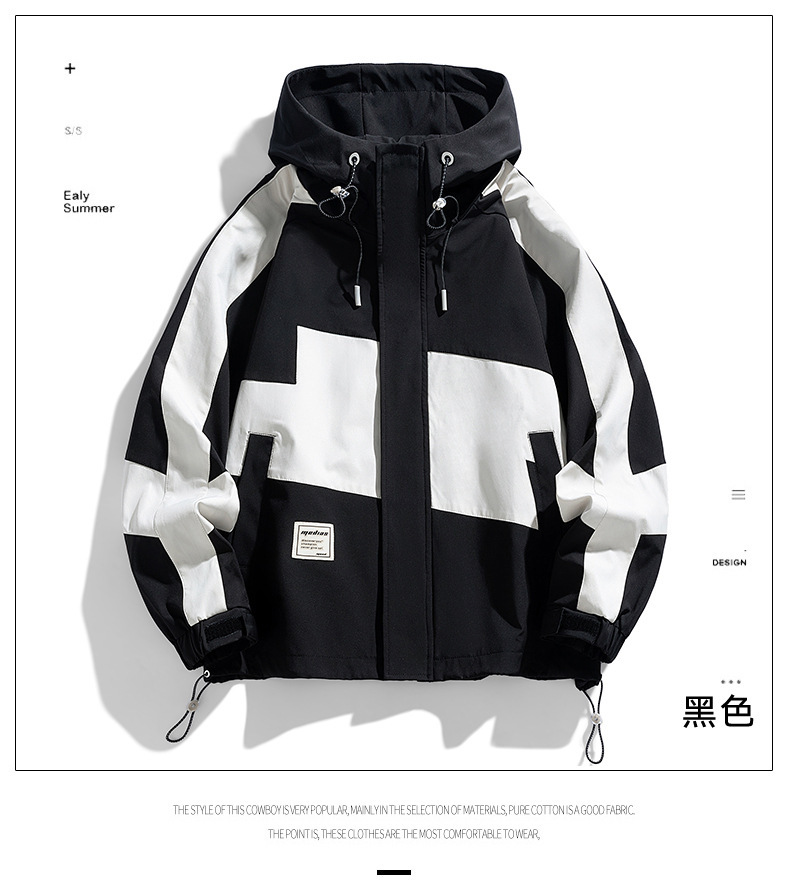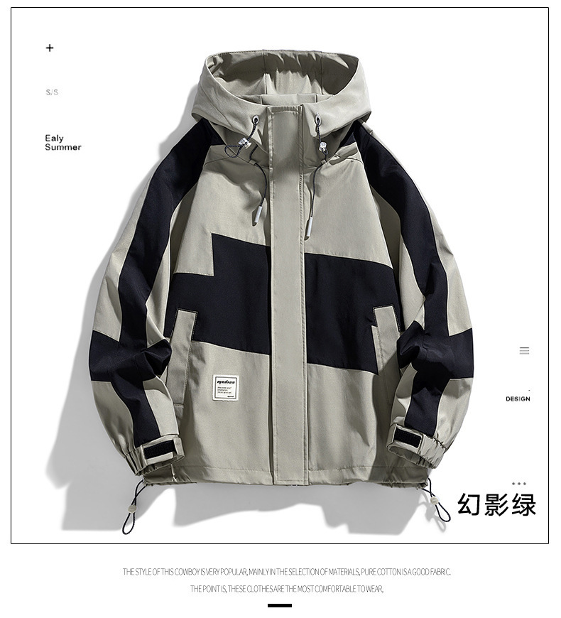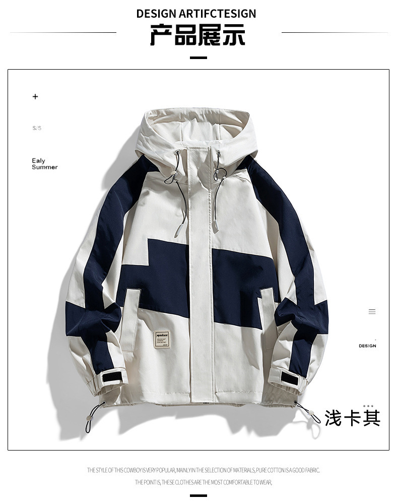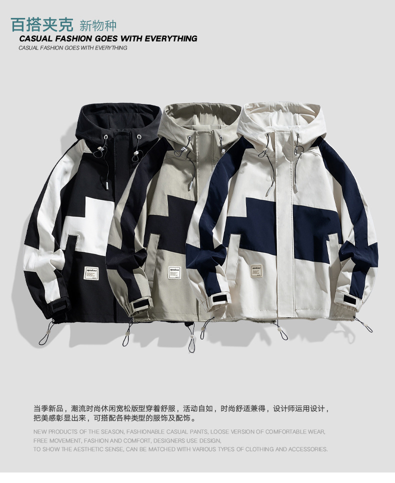 2024春秋男士拼接时尚百搭运动休闲街拍港风ins连帽长袖夹克