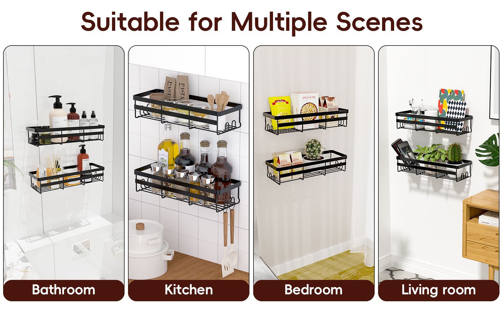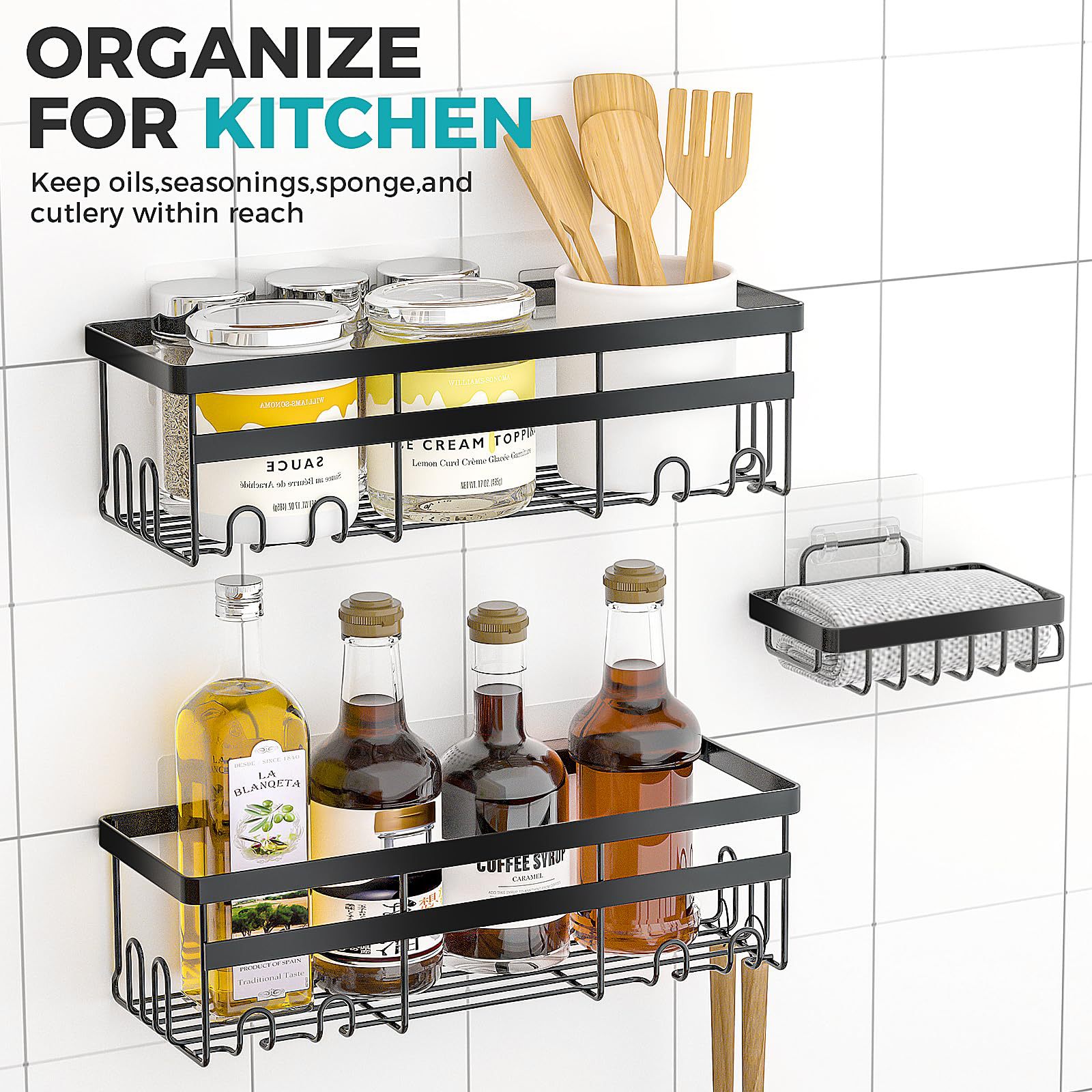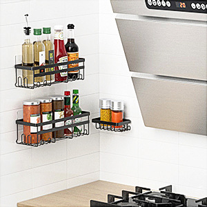 주방 수납 선반 무타공 다층 일상용품 수납 선반 가정용 주방 벽걸이 선반 조미료 선반