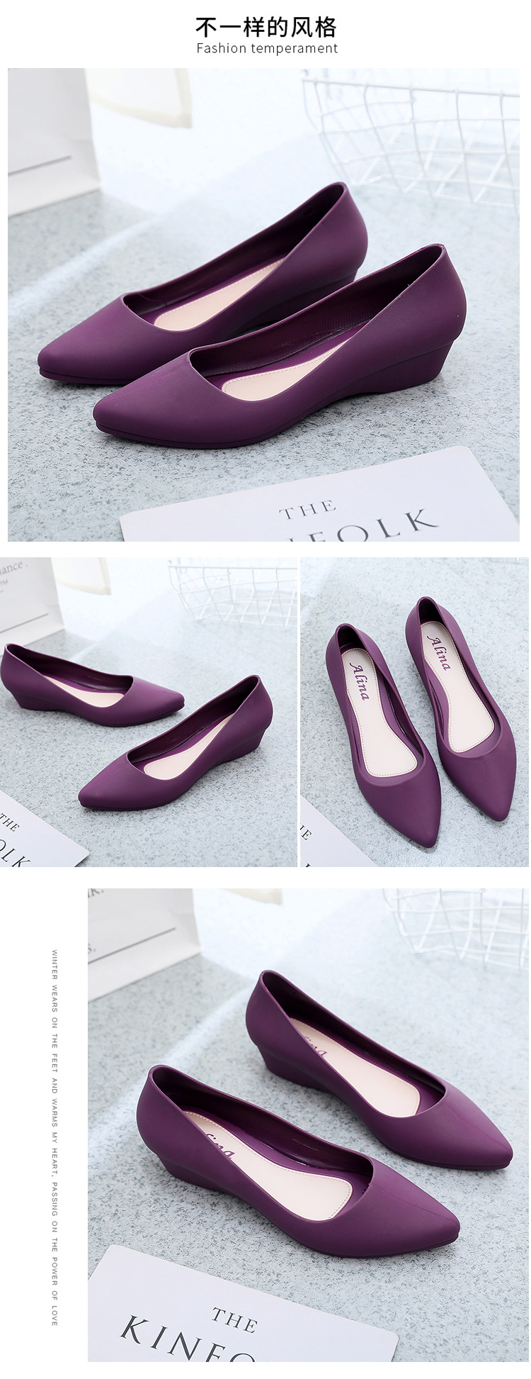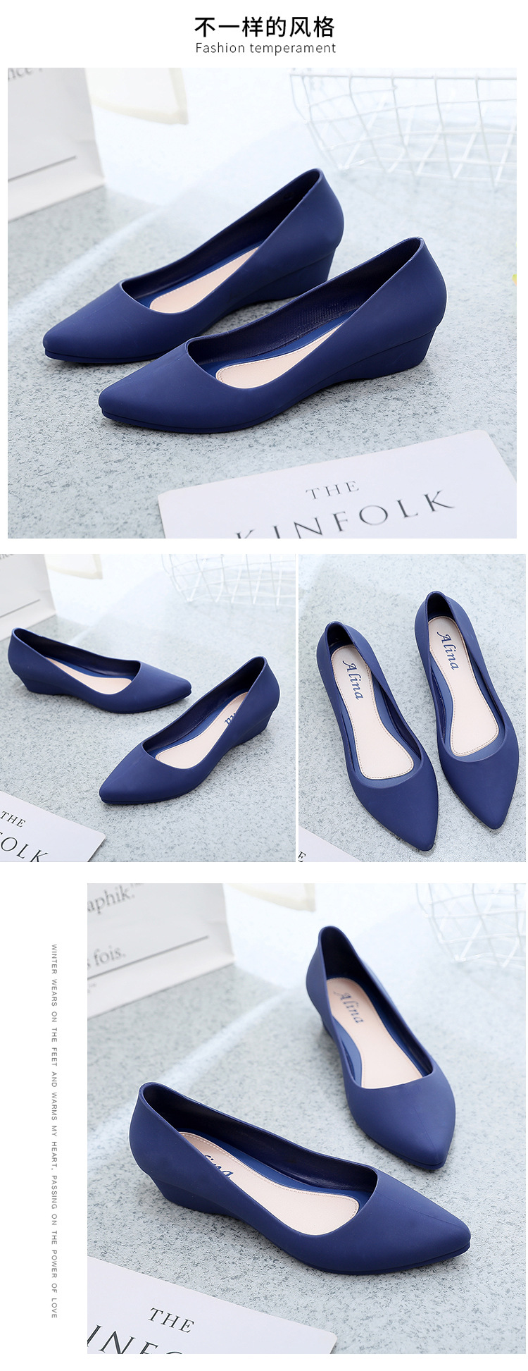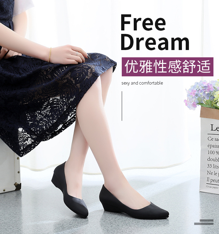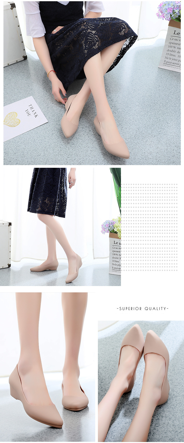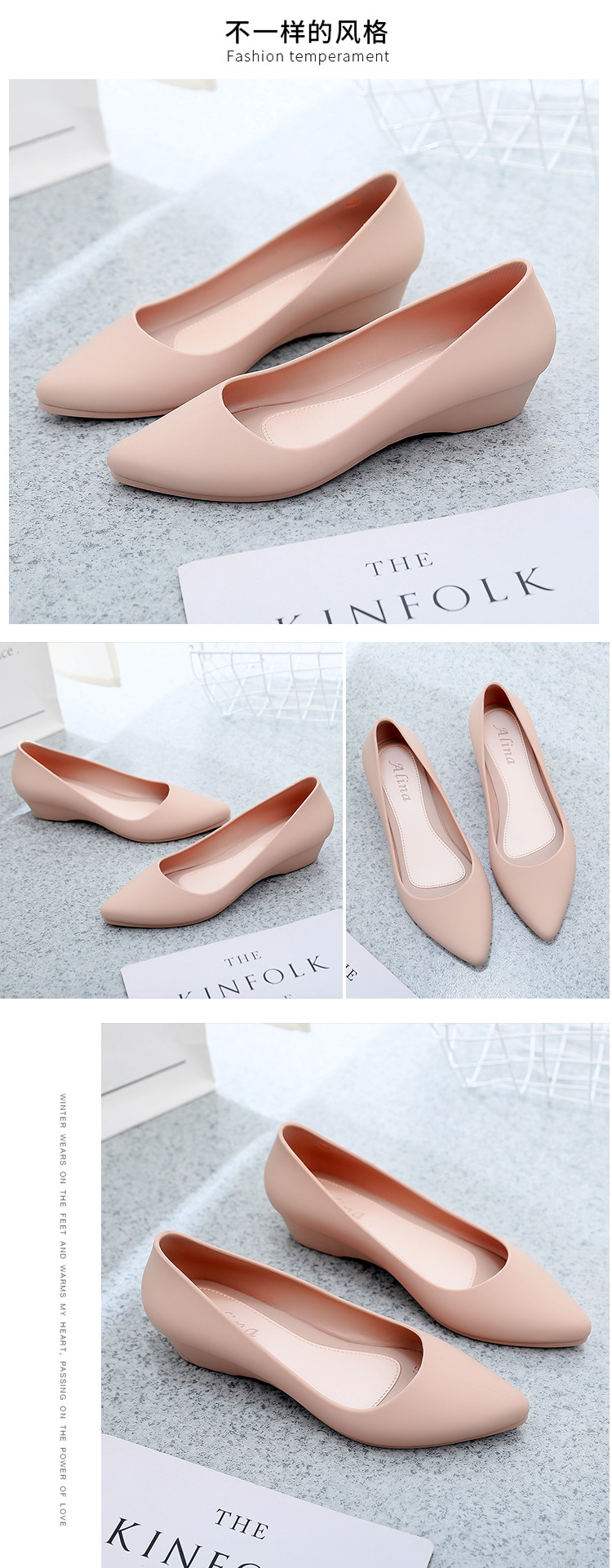 봄 2024 새로운 한국식 뾰족한 발가락 얕은 입 젖빛 신발 웨지 미드 힐 올매치 유행 미끄럼 방지 작업 신발스토어 가기