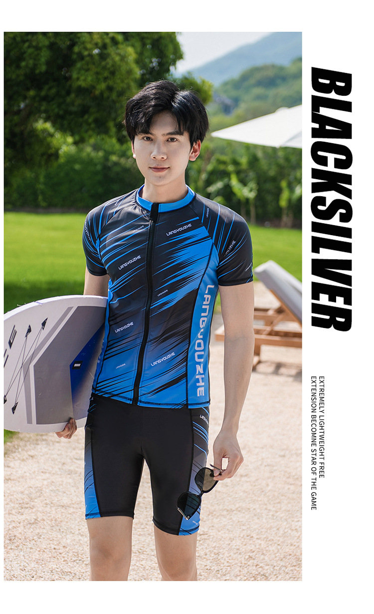 한국 다이빙 세트 학생 스플릿 투피스 온천 반팔 지퍼 남성 바지 서핑 스노클링 수영복