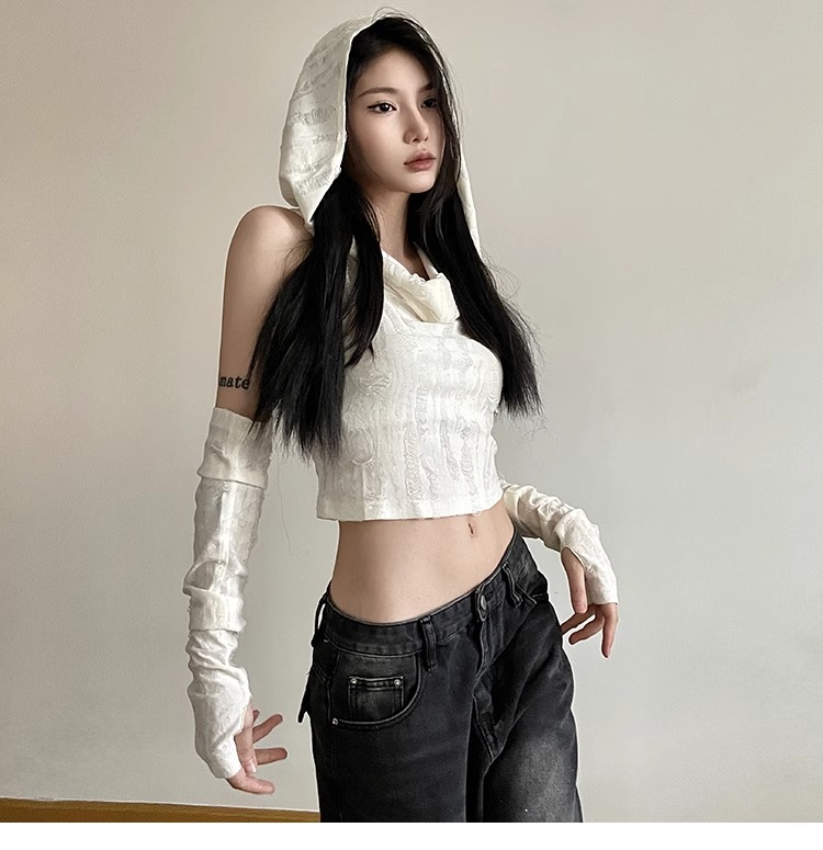황무지 달콤한 향신료 소녀 짧은 소매 최고 여성의 봄과 여름 랩 조끼 후드베이스 셔츠 티셔츠