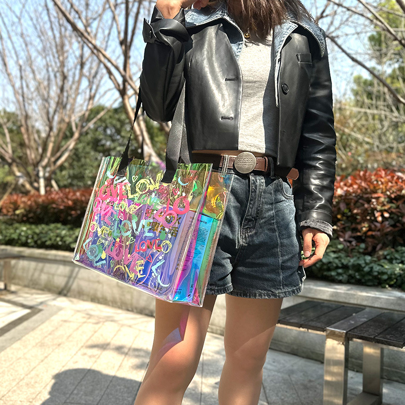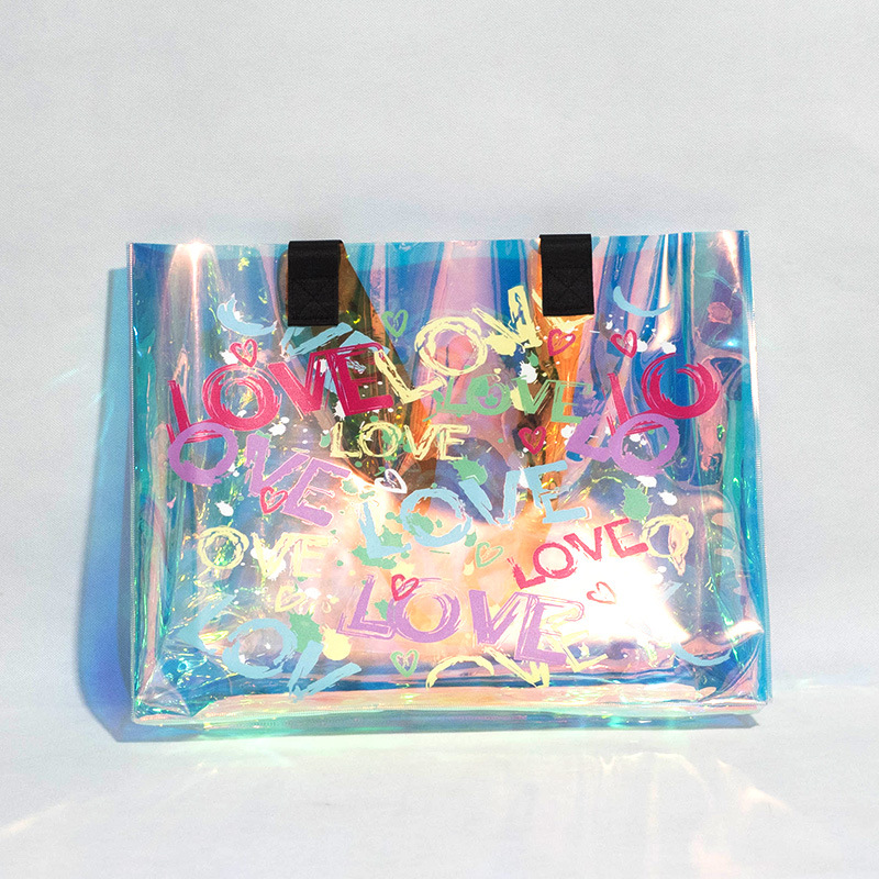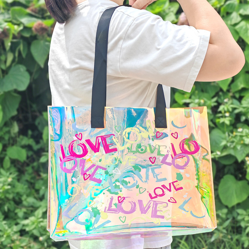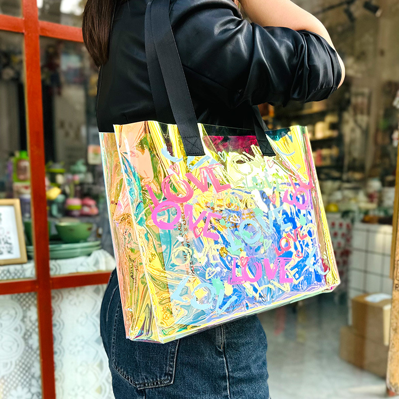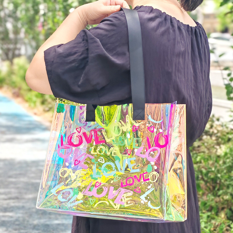 러브 비치 레이저 토트 백 매직 컬러 수영 피트니스 방수 가방 투명 젤리 가방 전시 선물 가방 크로스 테두리스토어 가기