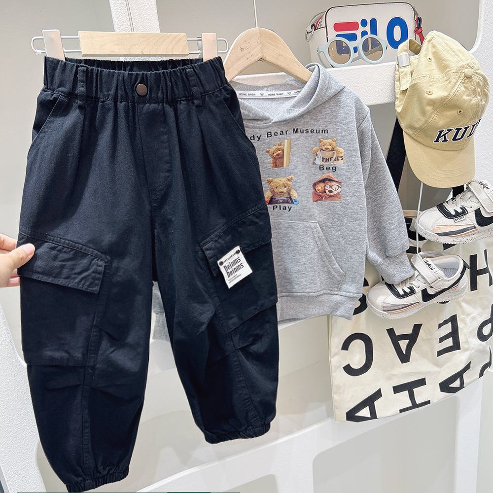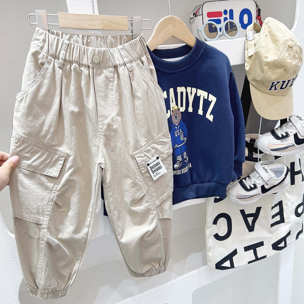 소년 바지 2024 년 봄과 가을 새로운 어린이 코일 바지 큰 어린이 가을 캐주얼 바지 소년의 가을 바지 잘 생긴스토어 가기