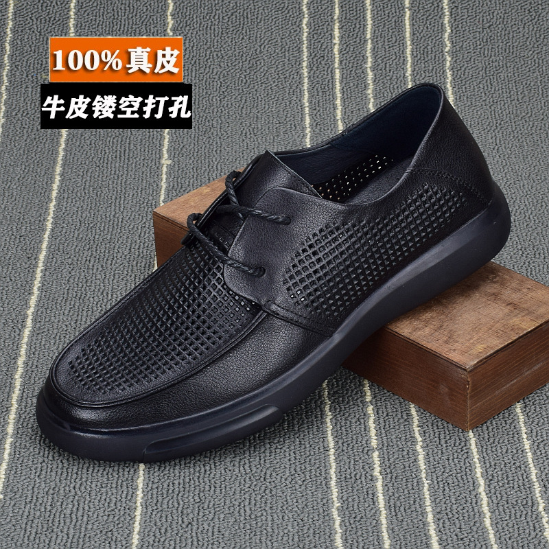 여름 대외 무역 남성용 레이스 업 얇은 통기성 캐주얼 할로우 가죽 신발 남성 정품 가죽 카우보이 구멍 착용 방지 가죽 샌들