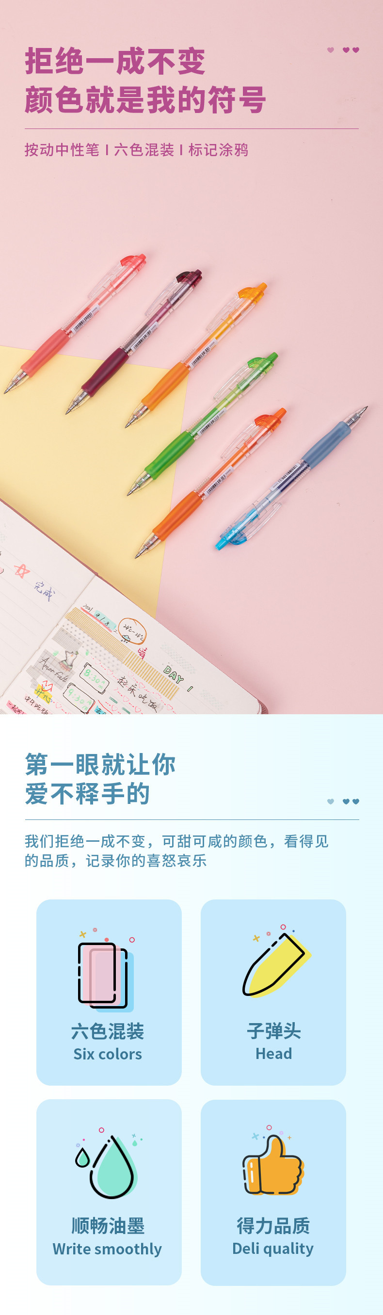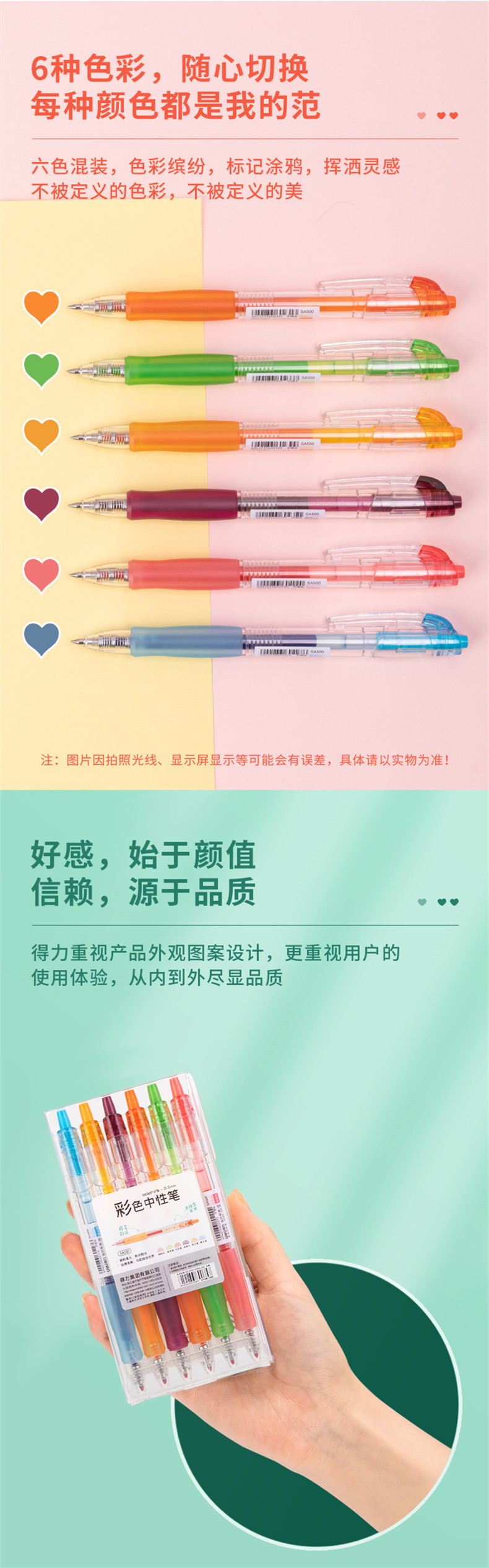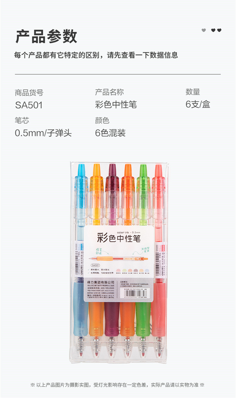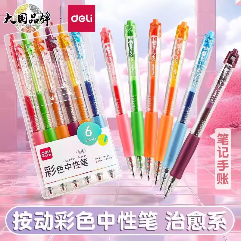 델리 SA501 프레스 컬러 젤 펜 0.5mm 총알 학생 사무실 손 계정 마커 컬러 펜 워터 펜
