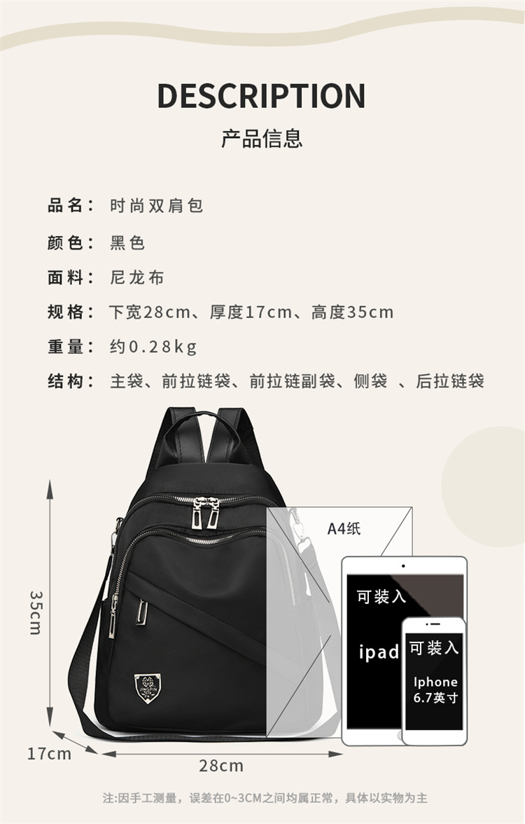 새로운 숙녀 나일론 천 배낭 멀티 사용 배낭 소녀 야외 여행 캐주얼 배낭 도매