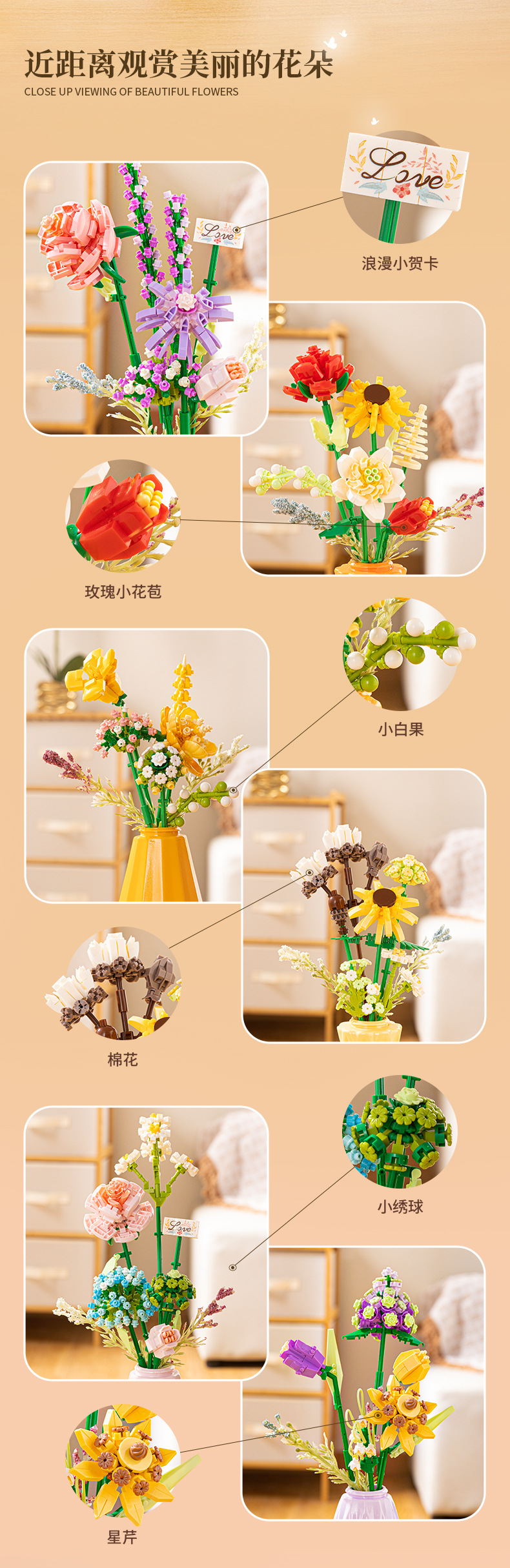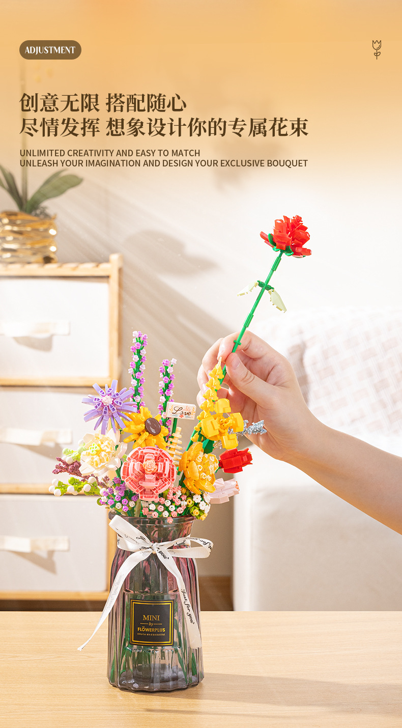 [도매 세대] 레고 퍼즐 데스크탑 장식품과 호환되는 유가오 꽃병 꽃다발 시리즈 61 선물스토어 가기