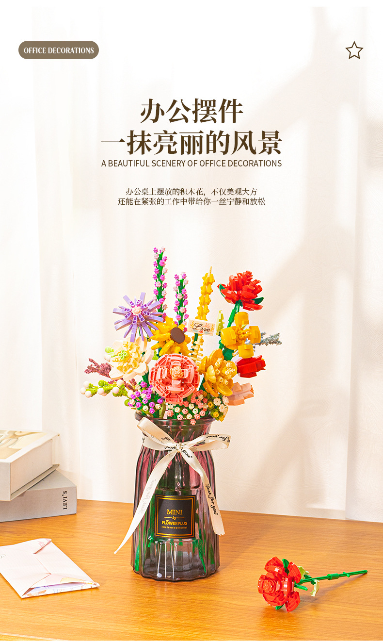 [도매 세대] 레고 퍼즐 데스크탑 장식품과 호환되는 유가오 꽃병 꽃다발 시리즈 61 선물