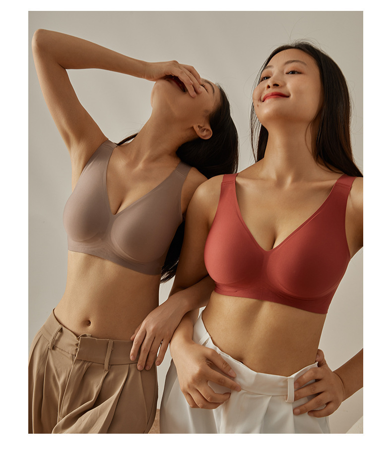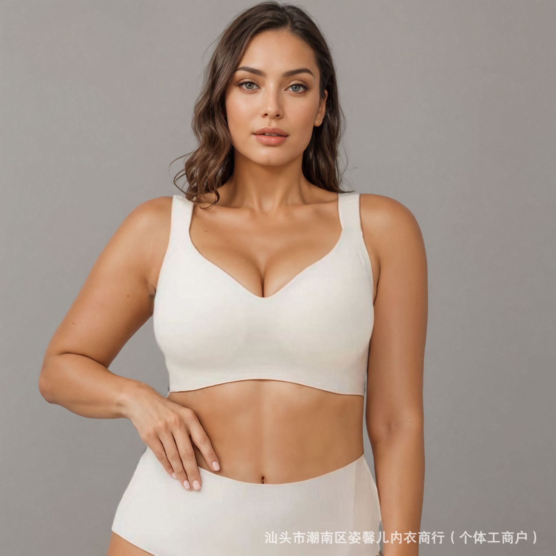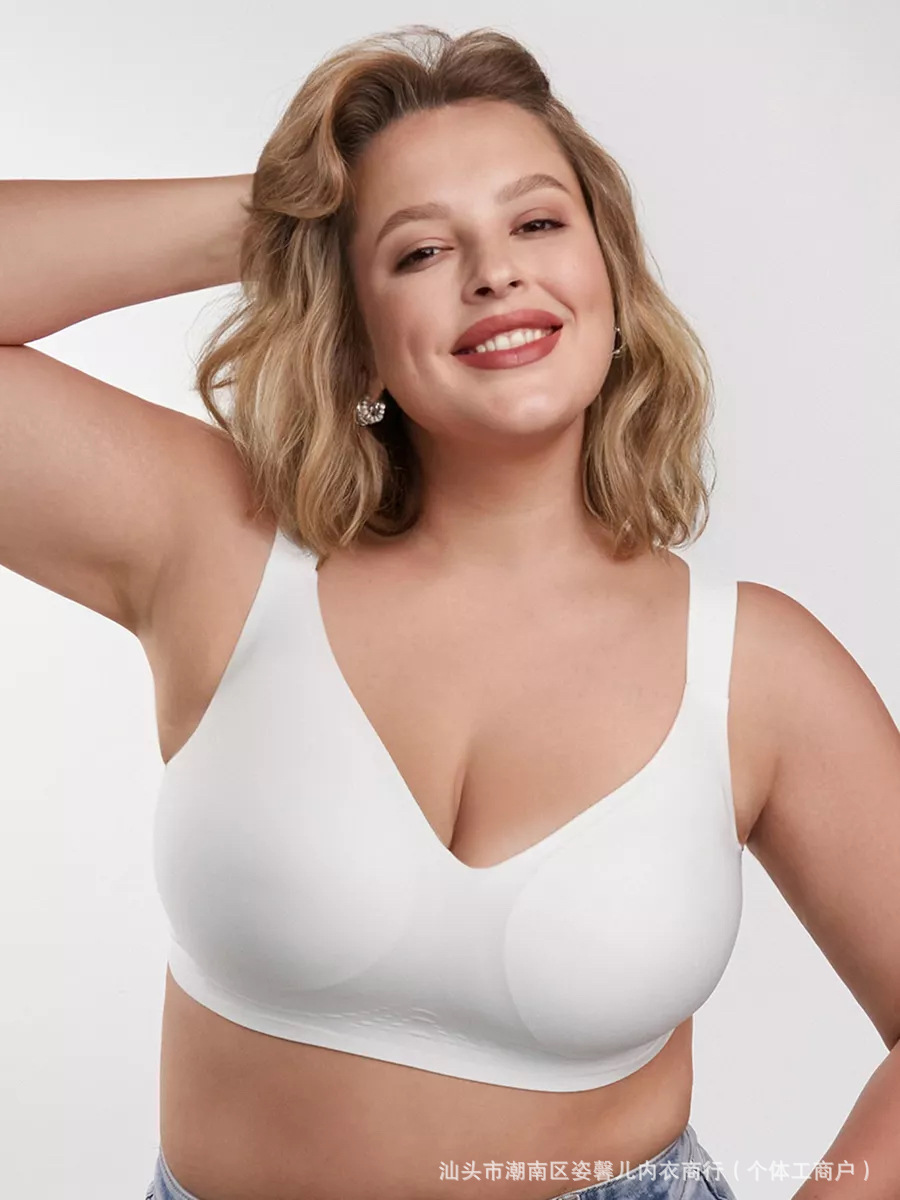 국경 간 플러스 사이즈 깊은 V 속옷 얇은 비 마킹 강철 고리없는 C- F 컵 큰 가슴 작은 처짐 방지 파라 유방 브래지어