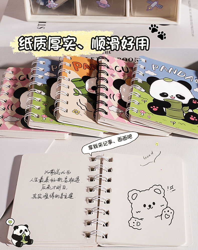 만화 귀여운 팬더 코일 A7 롤오버 미니 휴대용 작은 노트북 학생 졸업 상 포켓스토어 가기