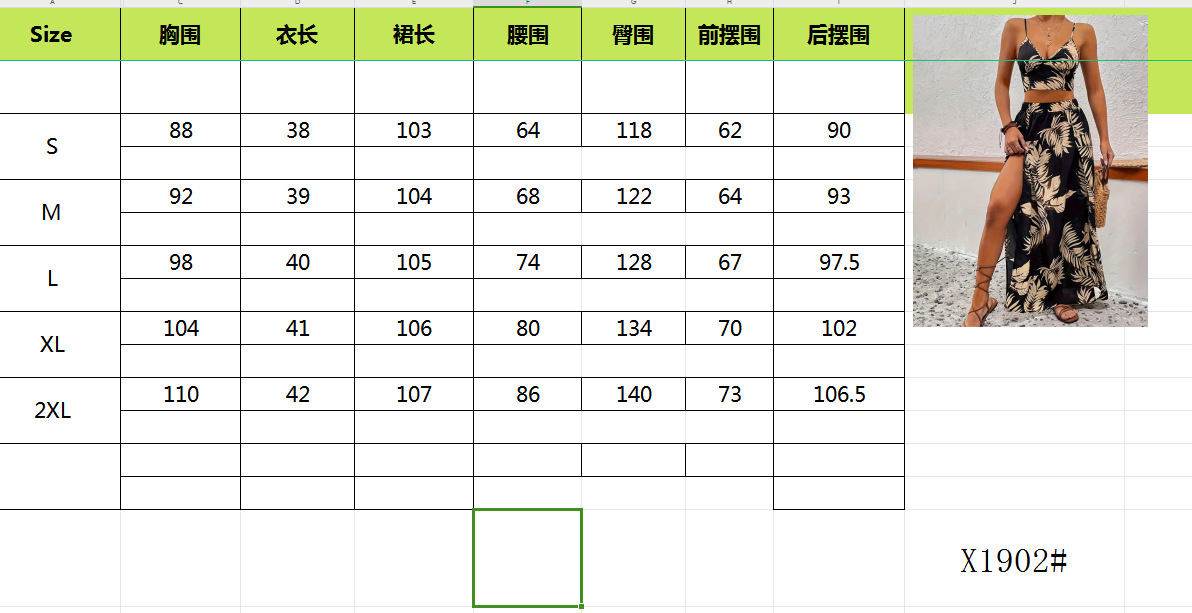 2024 국경 여름 새로운 슬링 하이 스플릿 스커트 세트 투피스 하이 엔드 대외 무역 레저 세트 여성스토어 가기