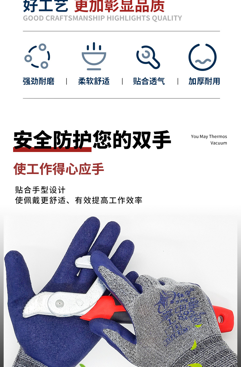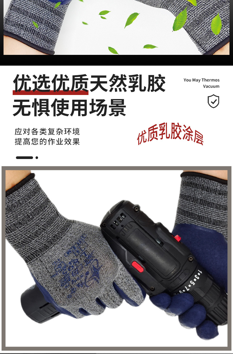 홍위장중싱(L895) 침지폼 장갑, 내마모성, 미끄럼 방지, 라텍스 주름, 건설 현장 작업용 안전 장갑스토어 가기
