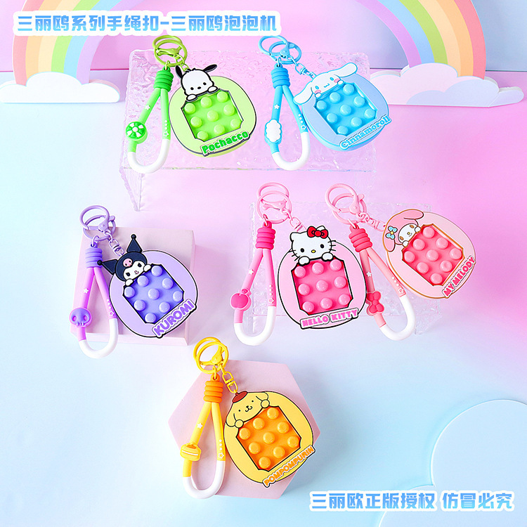[라니시] 정품 재미 산리오 시리즈 버블 머신 핸드 로프 키 체인 액세서리 여성을위한 작은 장난감 펜던트스토어 가기