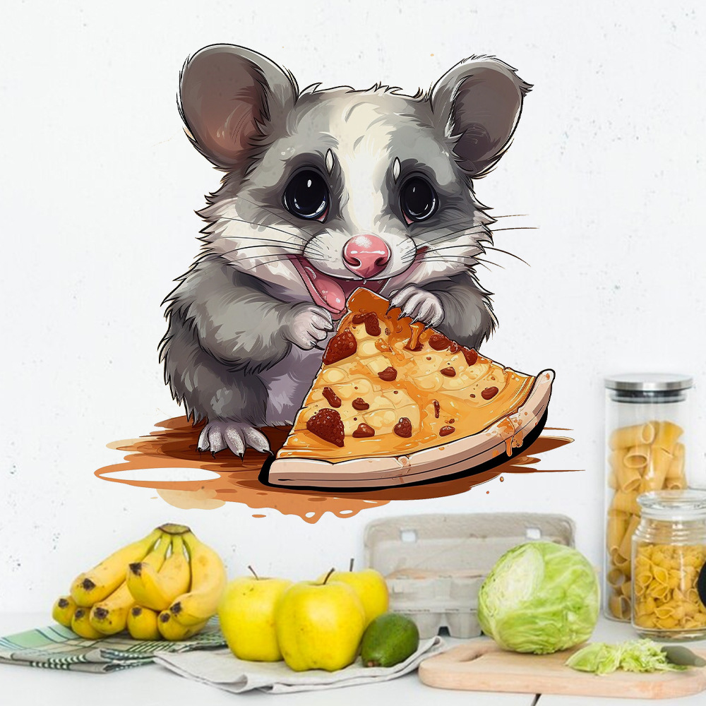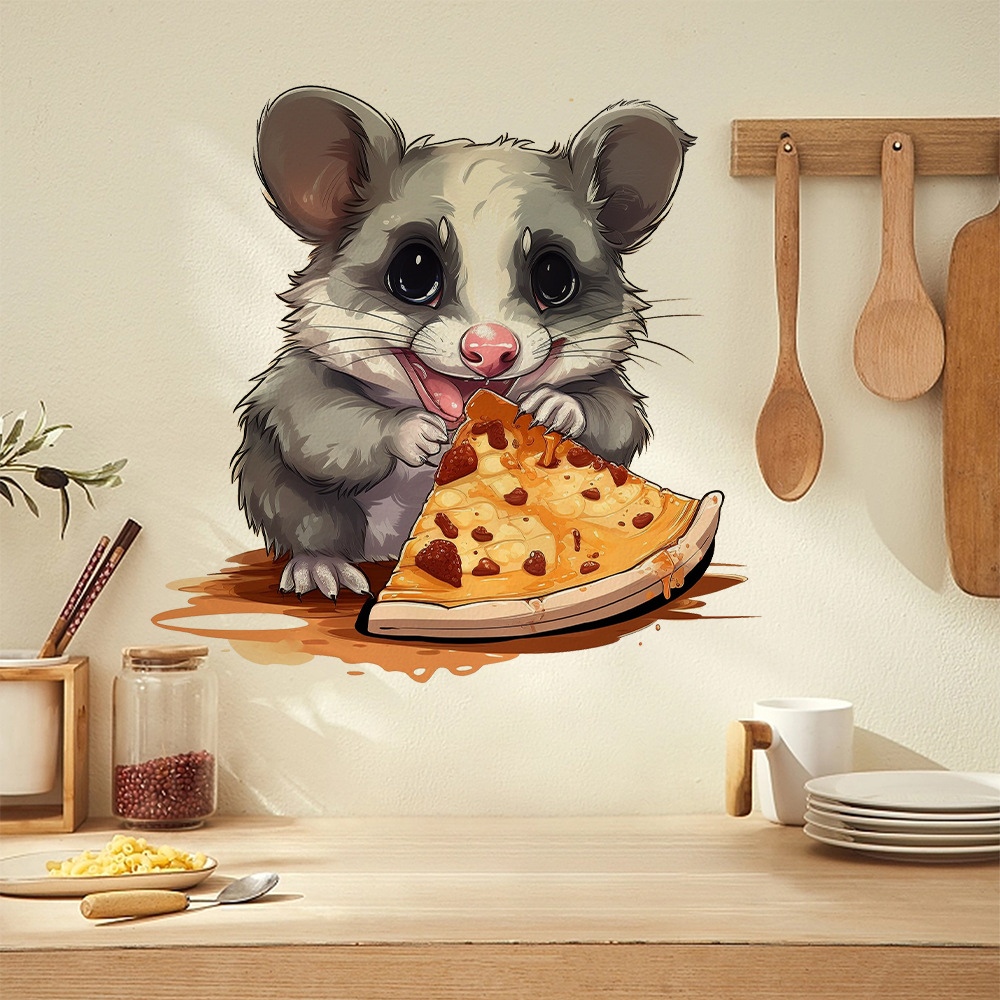Yiyao DD3333 재미있는 피자 마우스 스티커 벽지 침실 소파 캐비닛 장식 벽 자체 접착 스티커스토어 가기