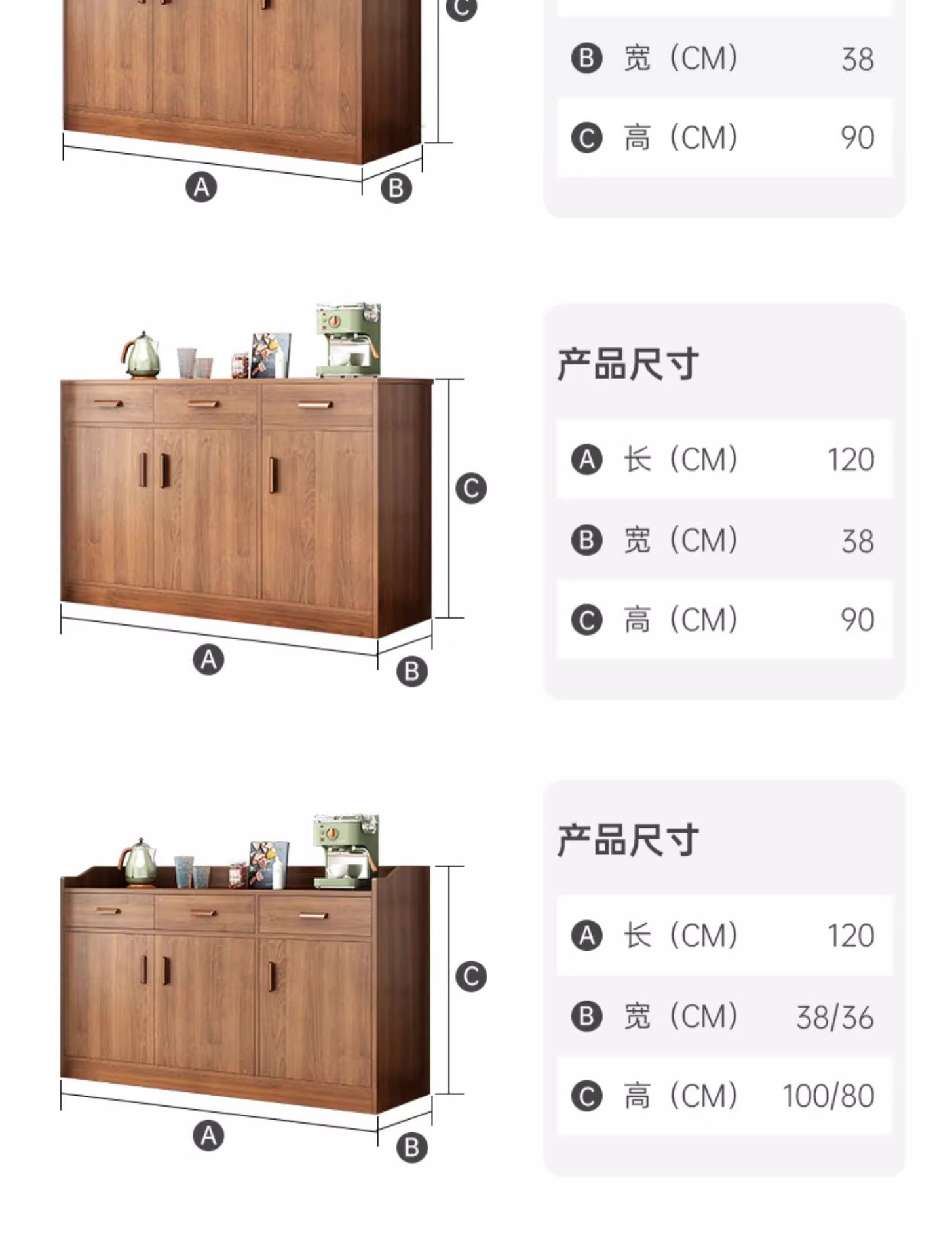 • 【기본형 - 4문 1서랍】 고단목 색상 110*30*80CM