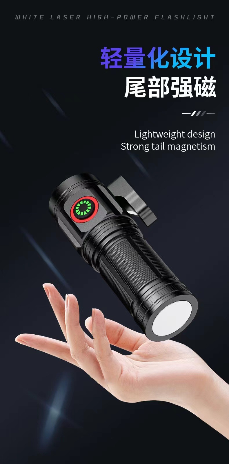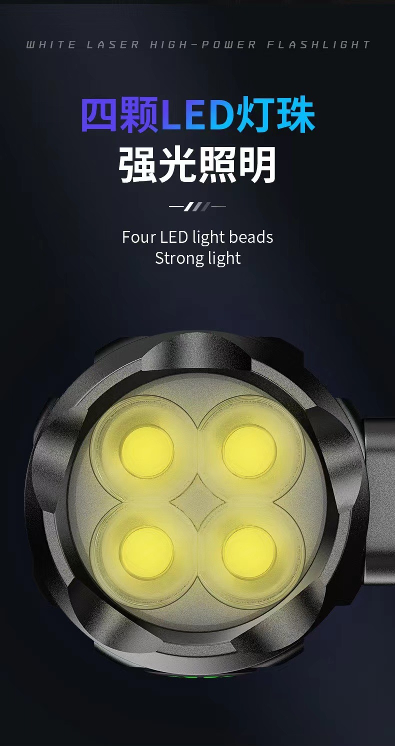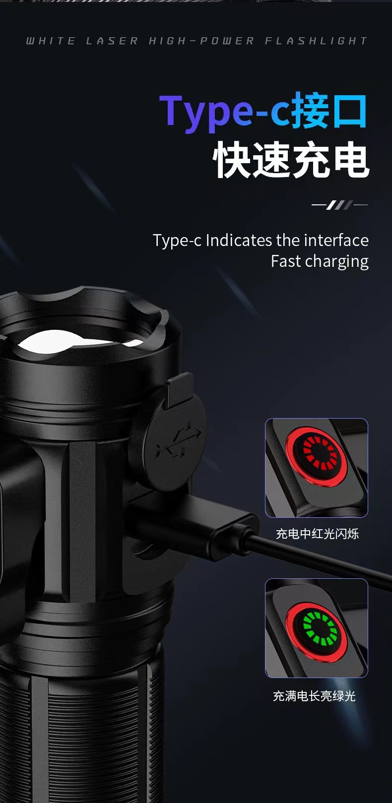 국경 간 새로운 3 눈 LED 손전등 유형-C 충전식 야외 알루미늄 합금 고출력 손전등스토어 가기