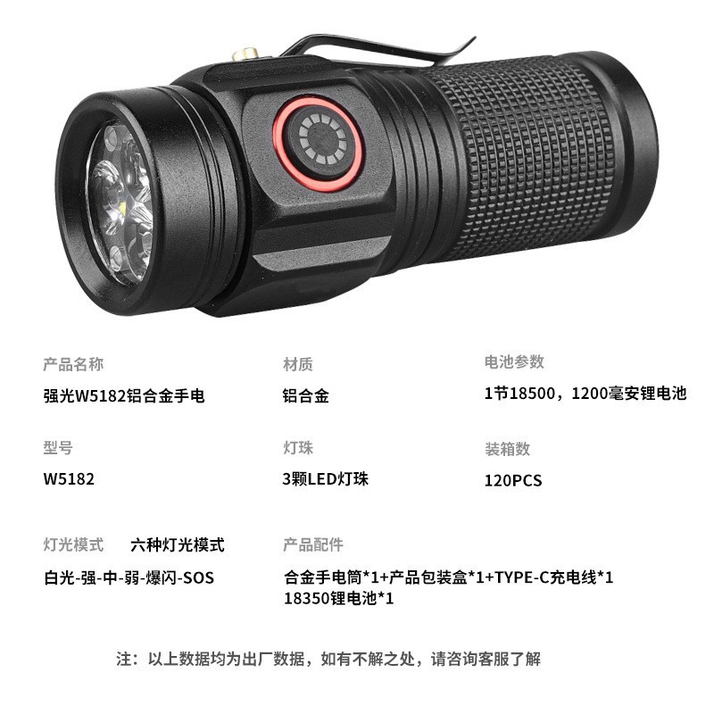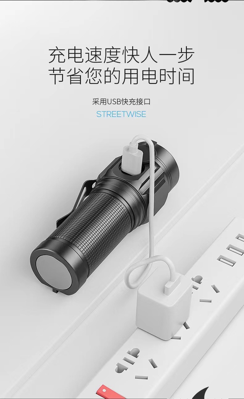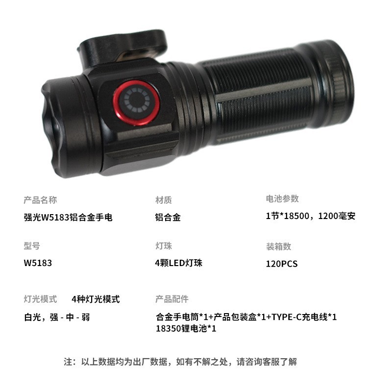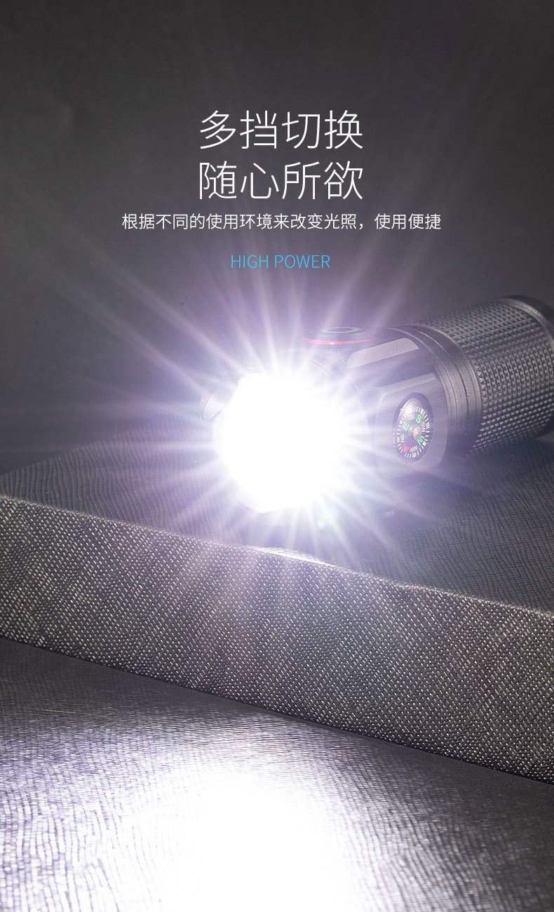 국경 간 새로운 3 눈 LED 손전등 유형-C 충전식 야외 알루미늄 합금 고출력 손전등스토어 가기