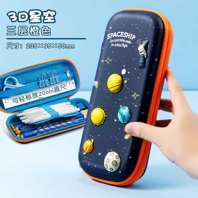 델리 EVA 연필 가방 남자 문구 가방 초등학교 학생을위한 연필 문구 상자 귀여운 대용량 어린이 만화 더블 레이어 유아스토어 가기