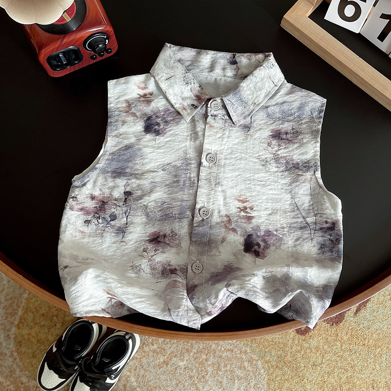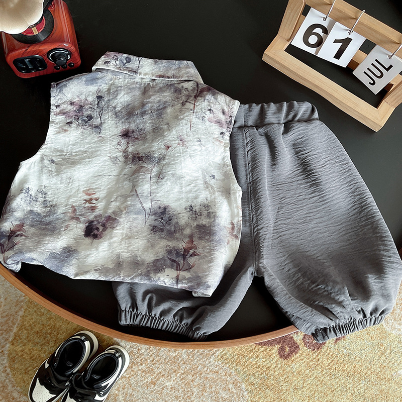 여름 아동복 조끼 패션 어린이 세트 어린이 캐주얼 착용 잉크 연꽃 연못 조끼 세트스토어 가기