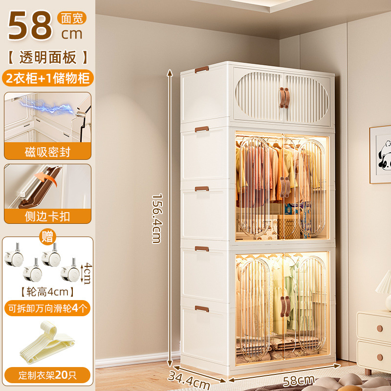 • ☆★폭 58CM - 투명 옷장 2겹 + 보관함 1겹 [옷걸이 20개 무료]☆★