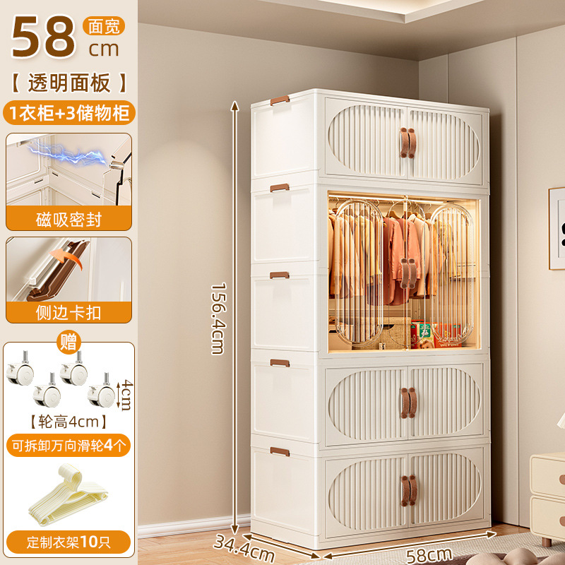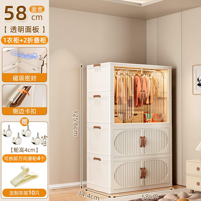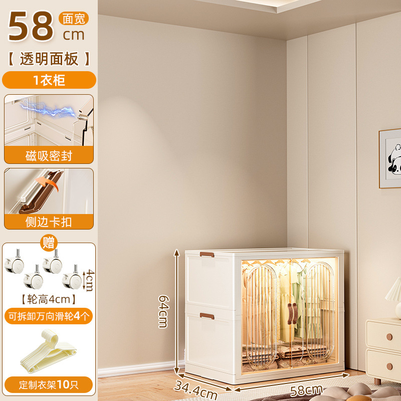 • ☆★폭 58CM - 투명 옷장 1단 + 수납함 1단 [옷걸이 10개 포함]☆★