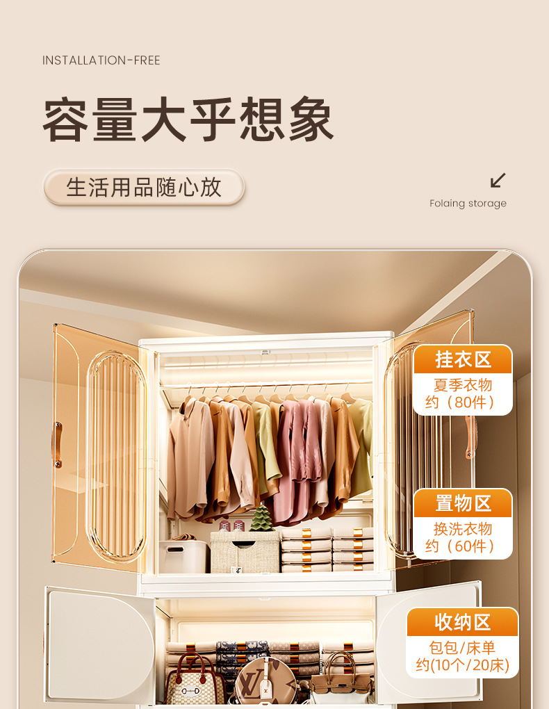 가정용 침실 간단한 옷장 임대 방 강력하고 튼튼한 바닥 서 조립 컬렉션 신제품 설치-무료 접이식 옷장
