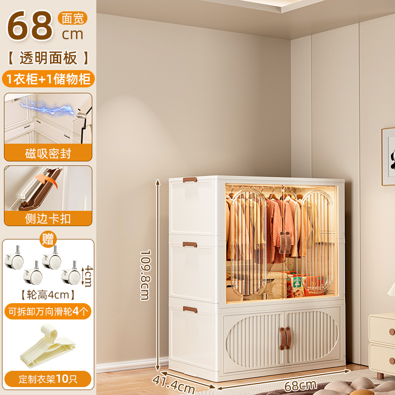• ☆★폭 68CM - 투명 옷장 1단 + 수납함 1단 [옷걸이 10개 포함]☆★