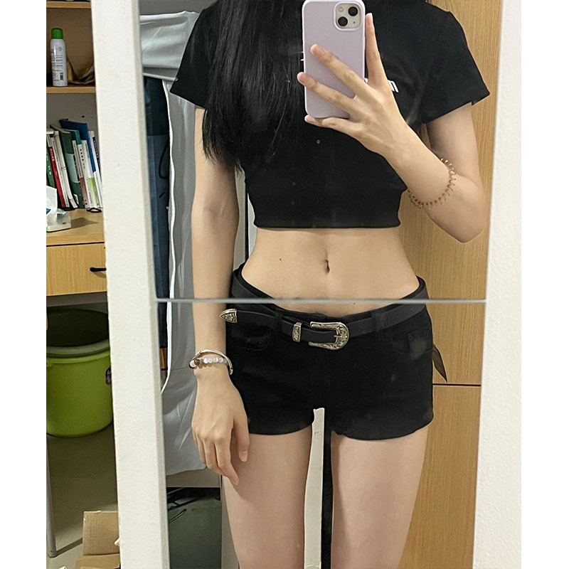 2024 년 여름 새로운 높은 허리 데님 반바지 여성 꽉 끼는 슬리밍 가방 엉덩이 뜨거운 소녀 검은 뜨거운 바지 반바지 착용 반바지