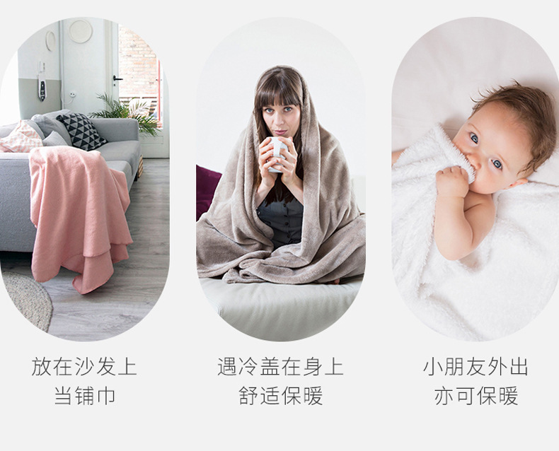 KI9Sins 담요 솔리드 컬러 거실 낮잠 담요 더블 레이어 에어컨 담요 소파 담요 플란넬 카운터 사진
