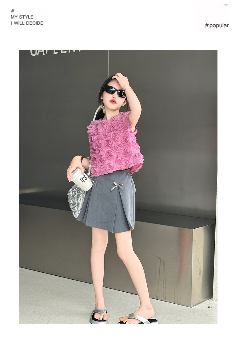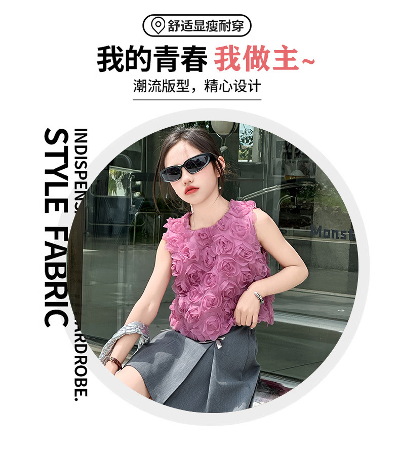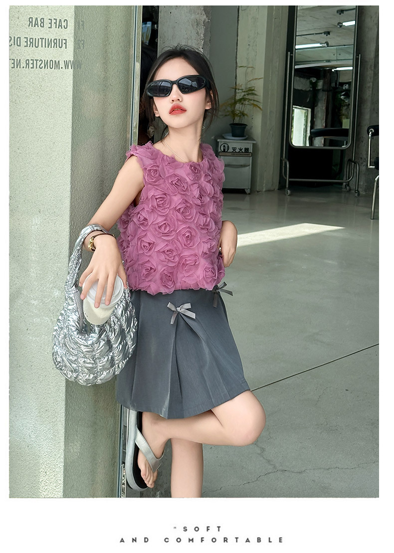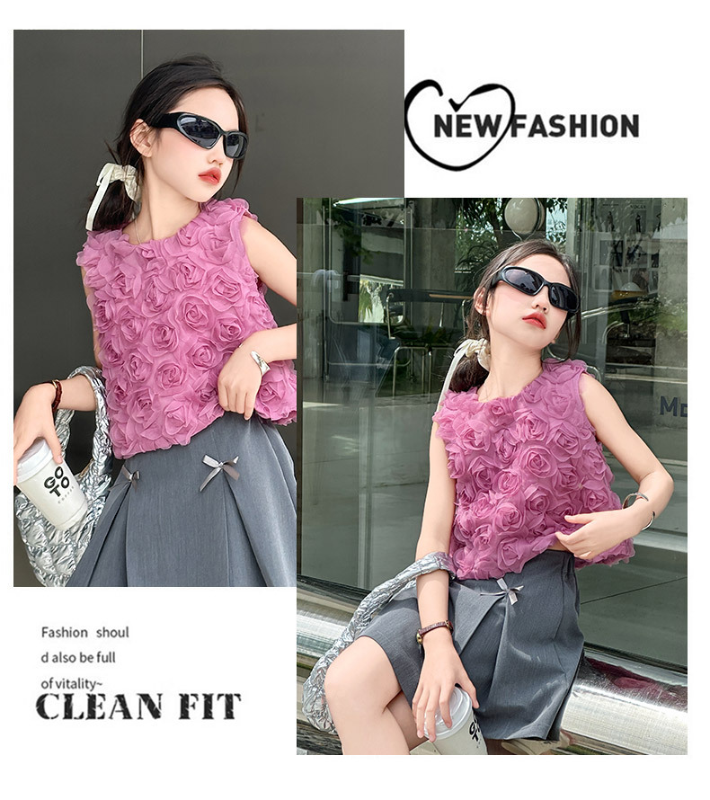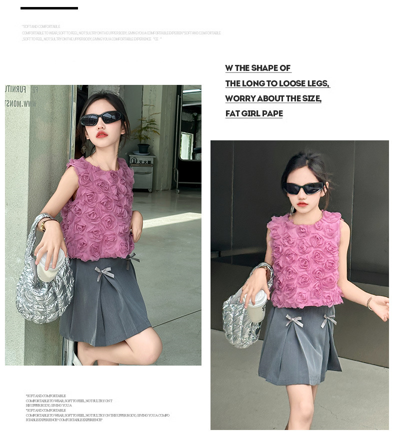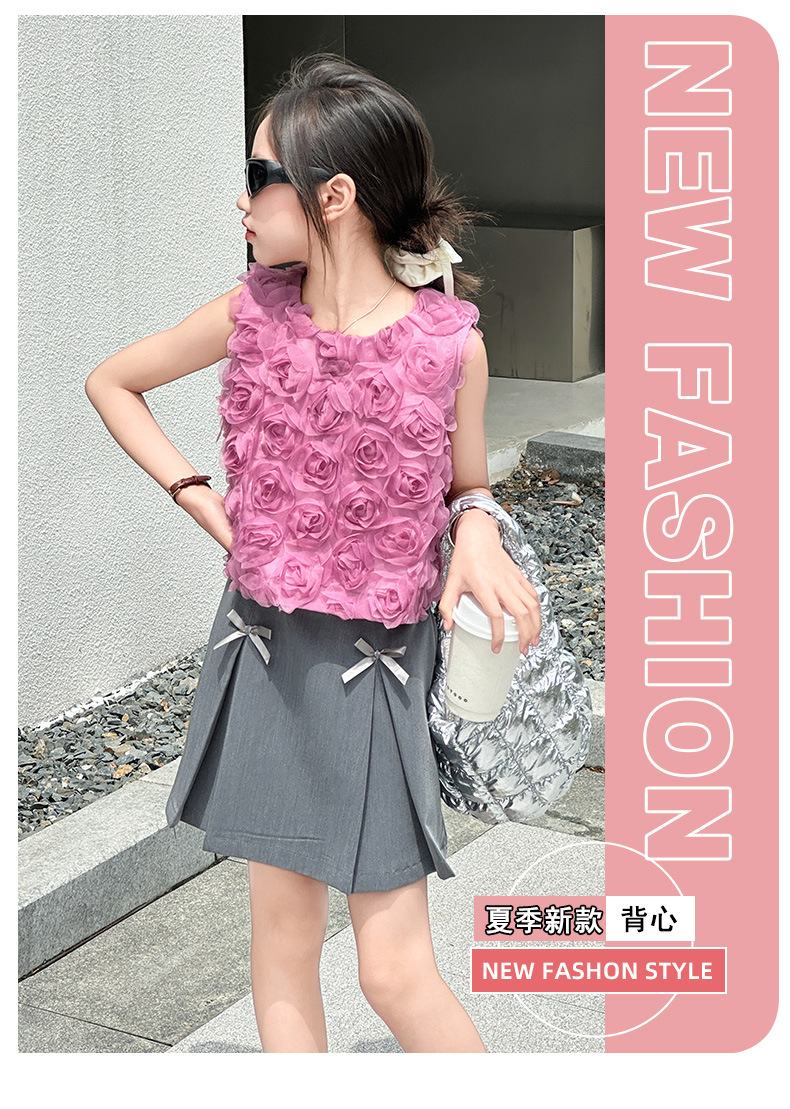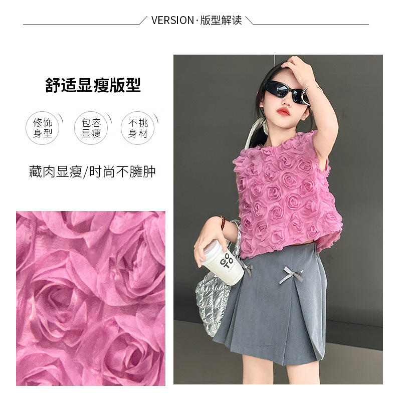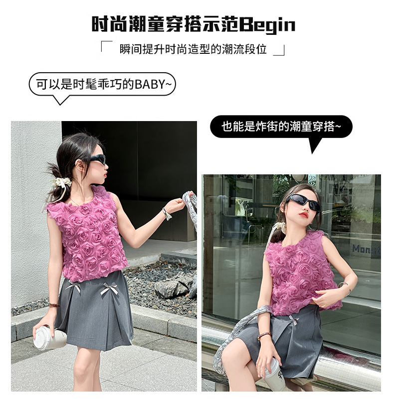 여성 대형 어린이 3 차원 장미 세트 2024 년 여름 프랑스 민소매 조끼 휴일 최고 치마 투피스 세트스토어 가기