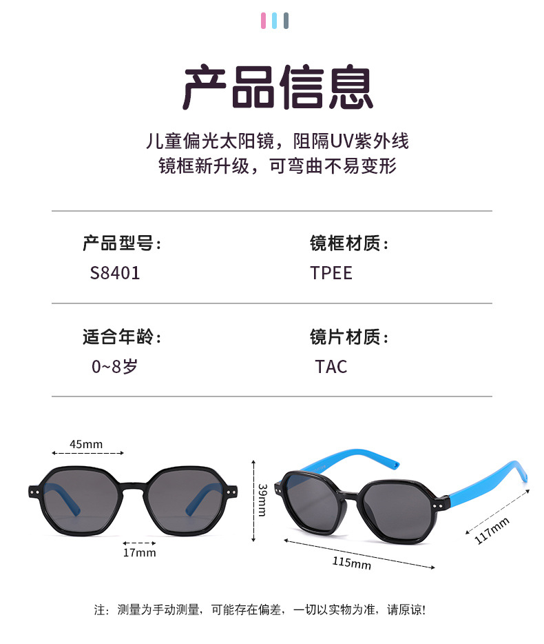 새로운 패션 편광 남성과 여성의 아기 선글라스 쌀 네일 폴리곤 안티 UV 선글라스 차양 안경 S8401