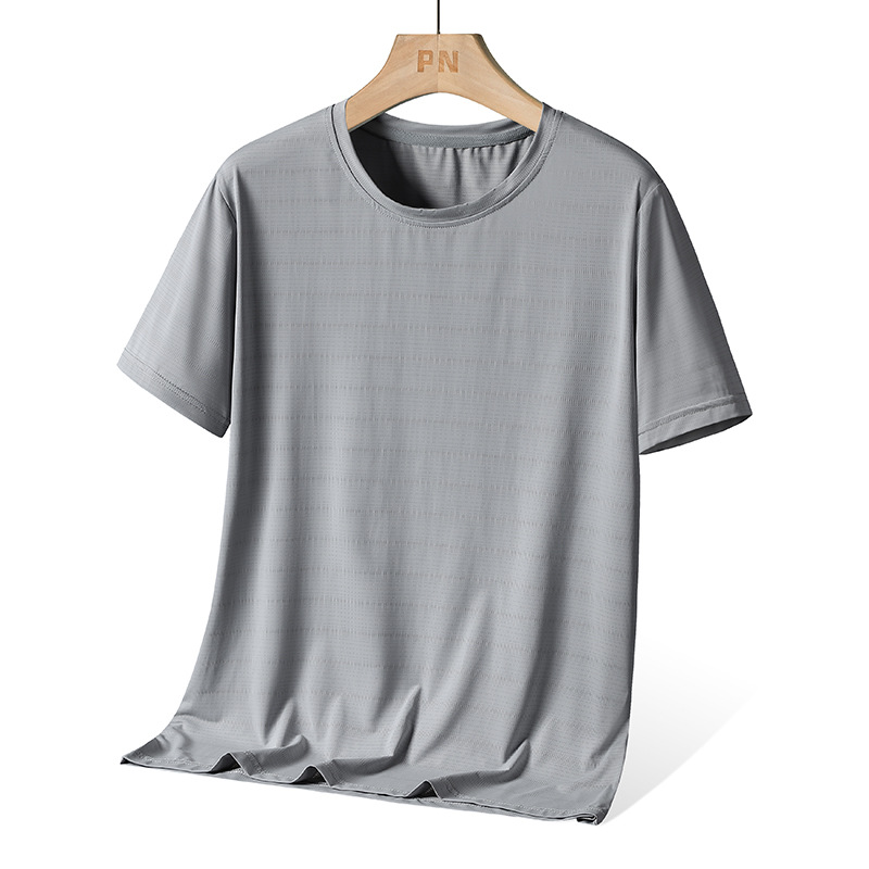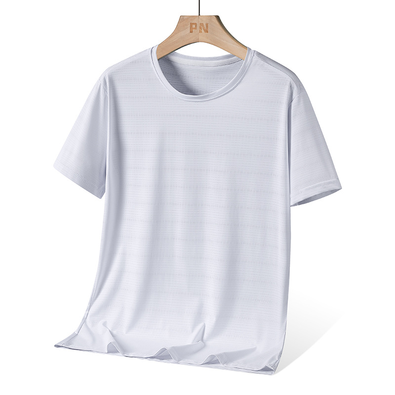 여름 아이스 실크 남성 피부 친화적 인 쿨 퀵 건조 티셔츠 느슨한 플러스 사이즈 야외 냉각 경량 통기성 탄성 짧은 소매