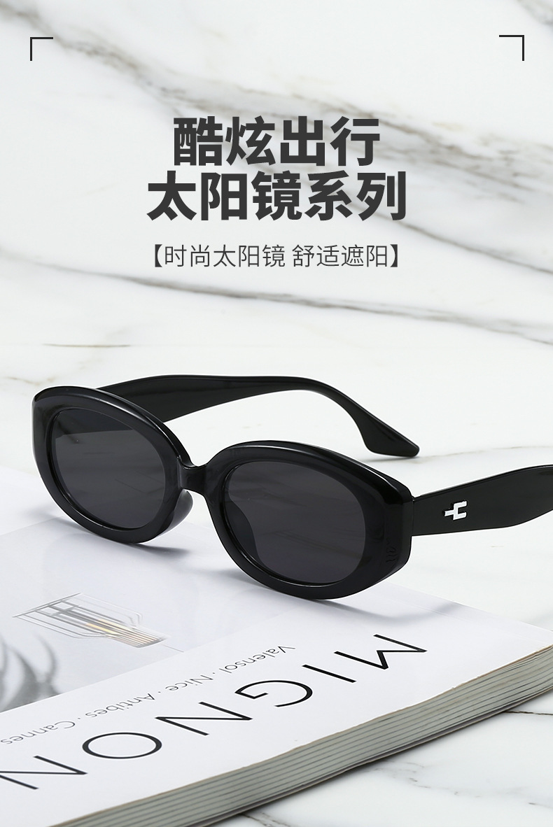 새로운 국경 복고풍 프레임 선글라스 맞춤형 타원형 프레임 선글라스 거리 샷 슬림 작은 빨간 책 같은 스타일 선글라스스토어 가기
