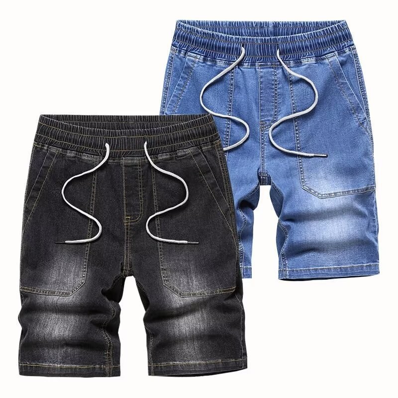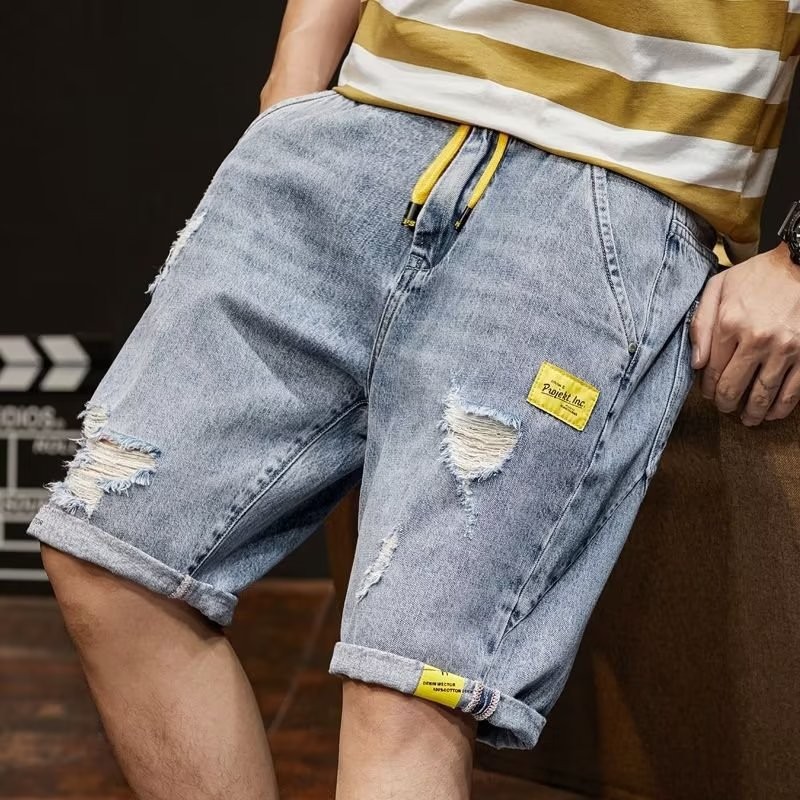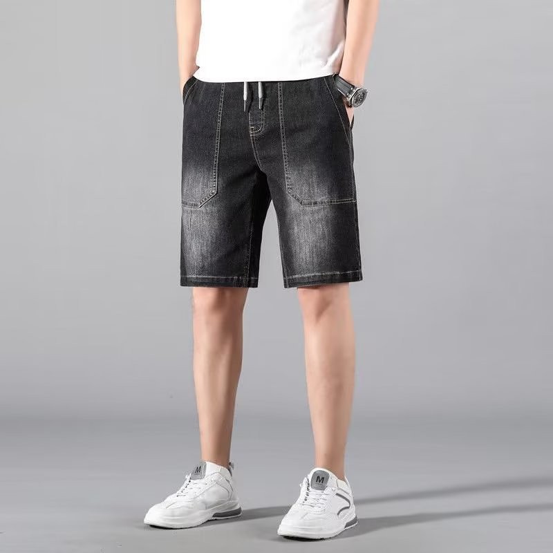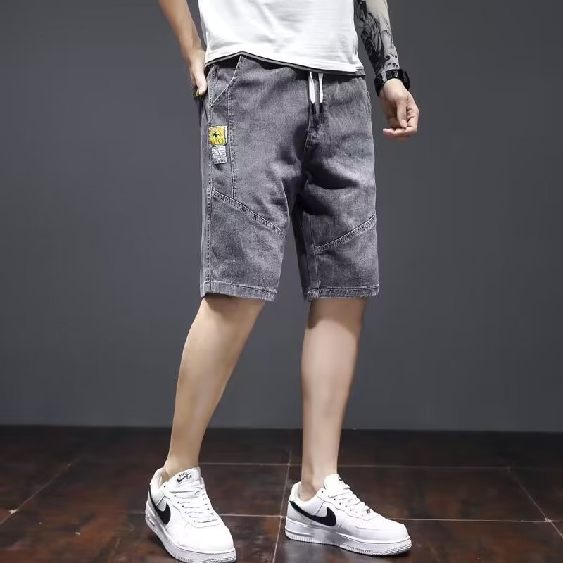 여름 트렌디 브랜드 데님 반바지 남성용 느슨한 5 점 바지 얇은 중간 길이 바지 거머리 캐주얼 오버홀 청바지스토어 가기
