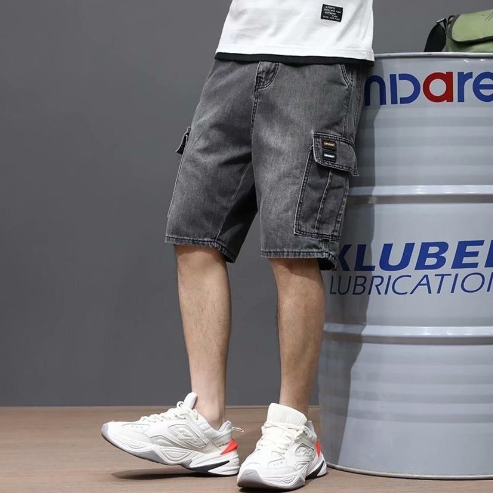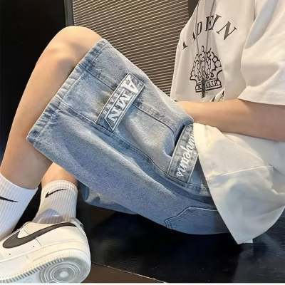 夏季潮牌牛仔短裤男士宽松五分裤薄款中裤马裤休闲工装牛仔裤