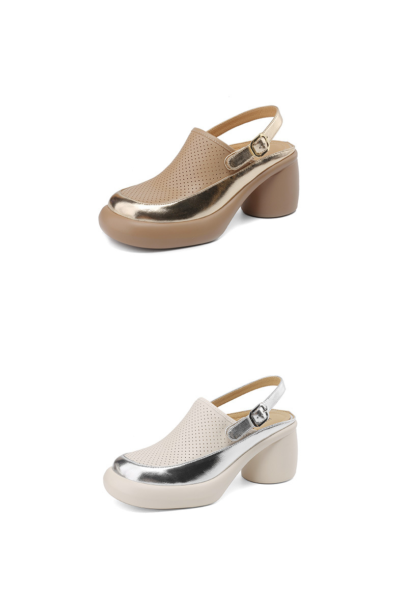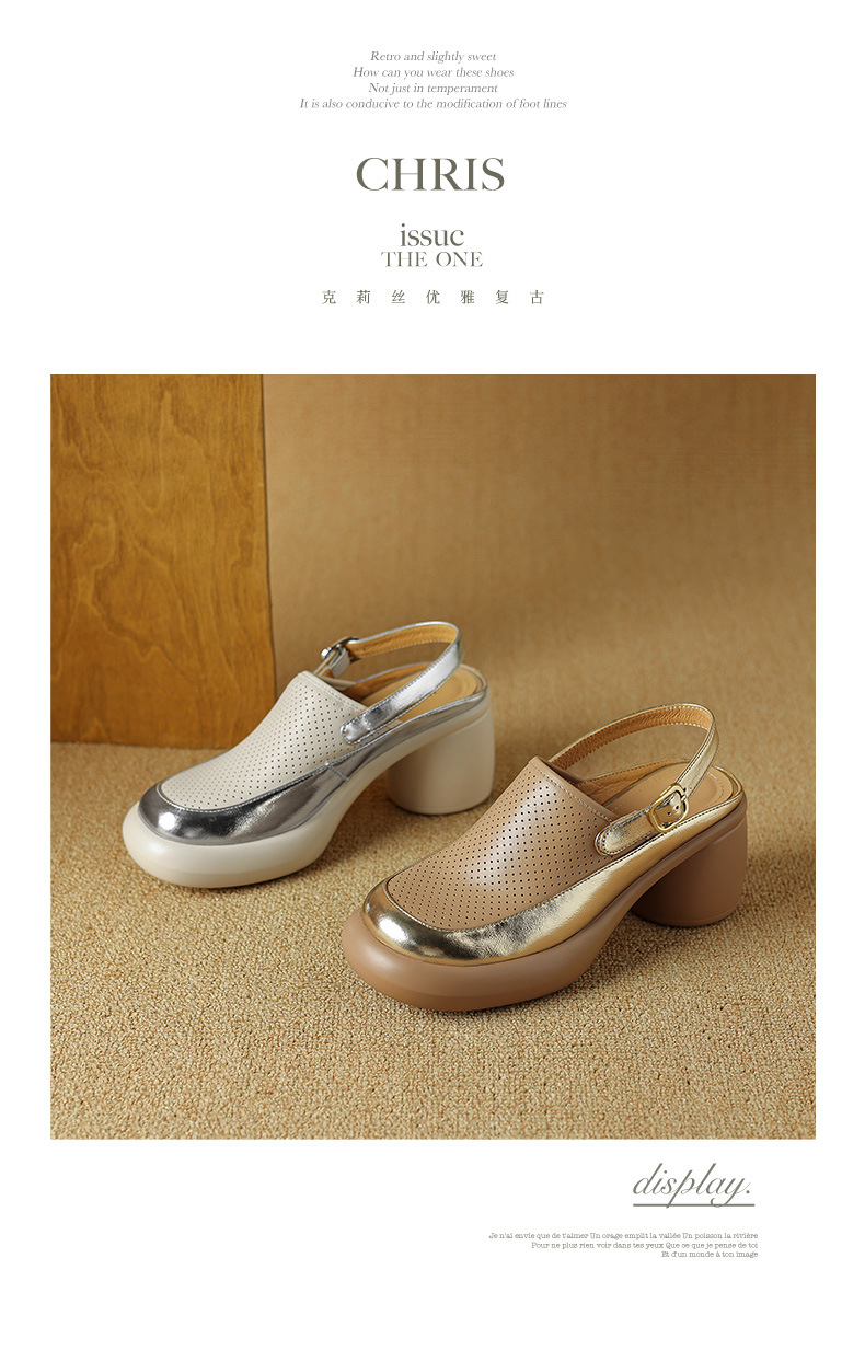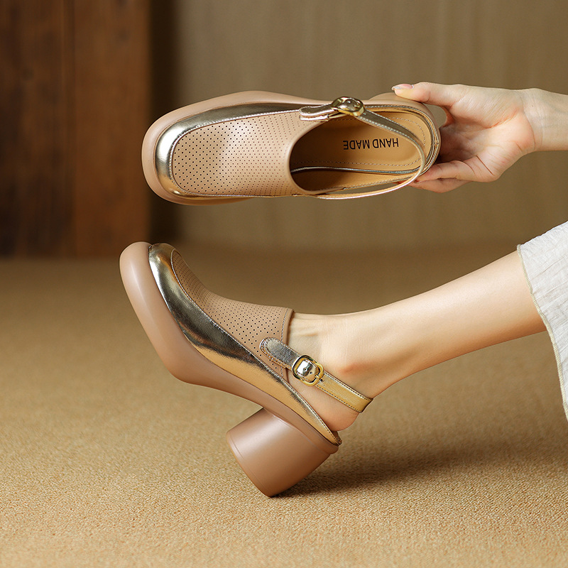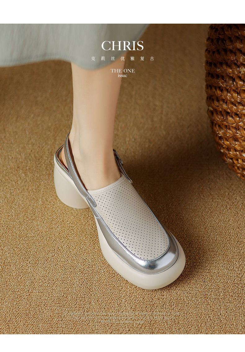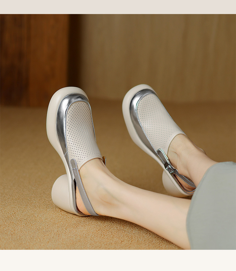 발가락 플랫폼 샌들 여성용 정품 가죽 중공 돼지 케이지 슈즈 2024 새로운 여름 메쉬 홀 청키 힐 로마 신발스토어 가기