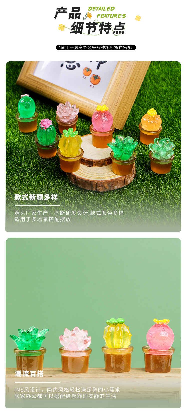 마이크로 풍경 다육 식물 시뮬레이션 빛나는 화분에 심은 선인장 귀여운 데스크탑 장식품 액세서리 자동차 장식 홈 도매
