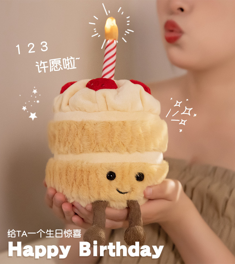 영국 젤리 캣 재미있는 생일 케이크 인형 부드러운 인형 봉제 장난감 동반자 인형 침대 동반자 인형