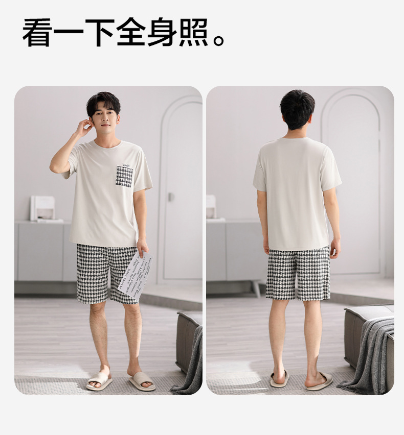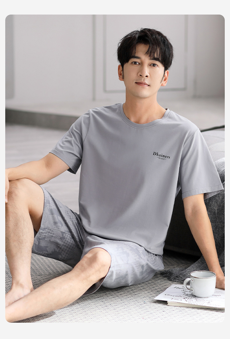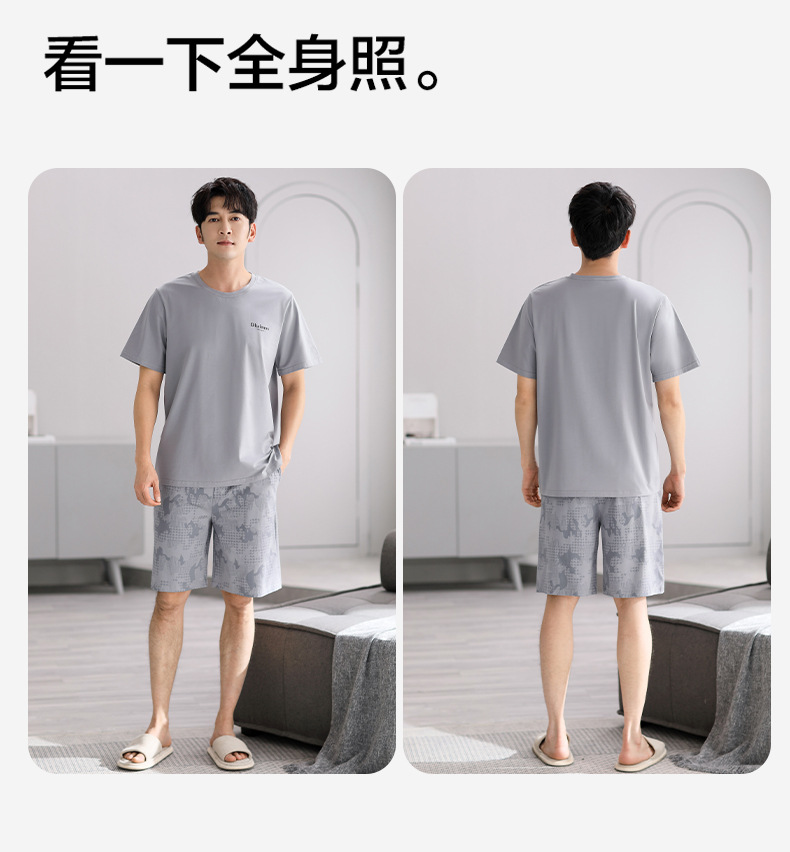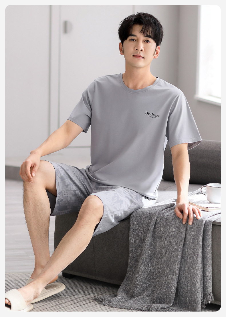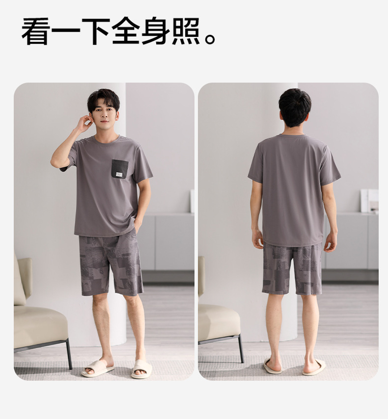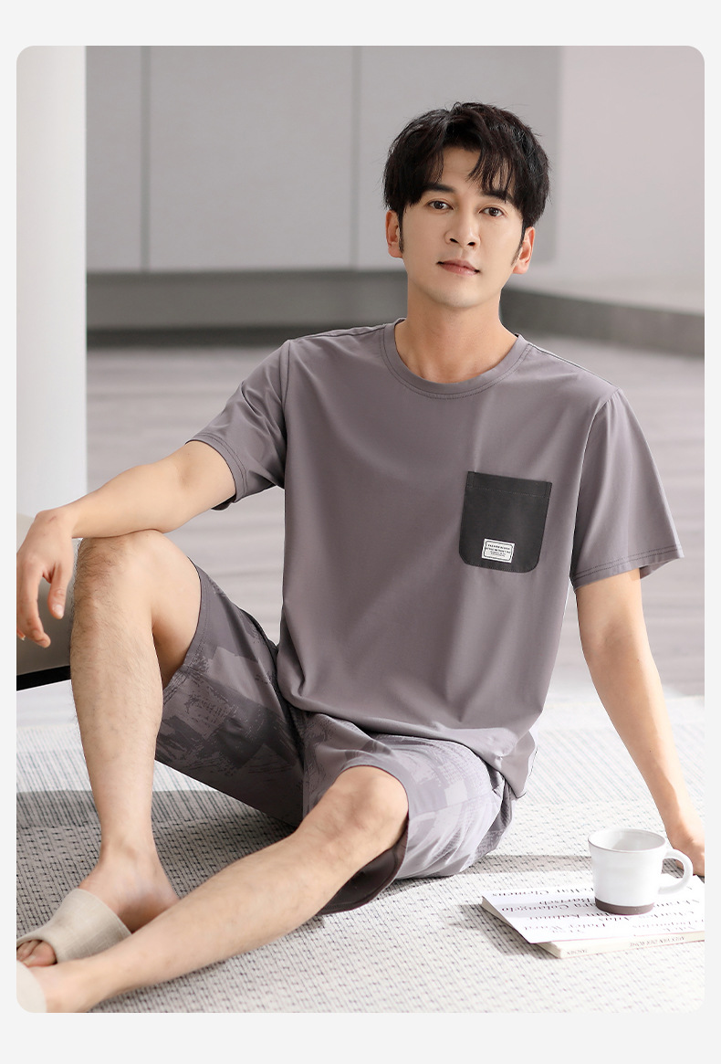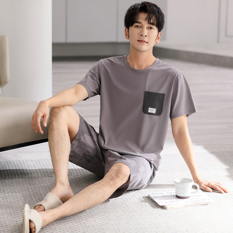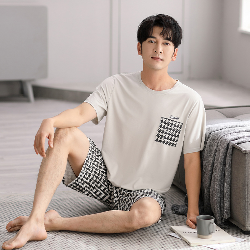 시원한 느낌의 잠옷 남자 여름 모달 코튼 실크 반팔 반바지 홈 옷 남자 여름 얇은 아이스 실크 세트스토어 가기