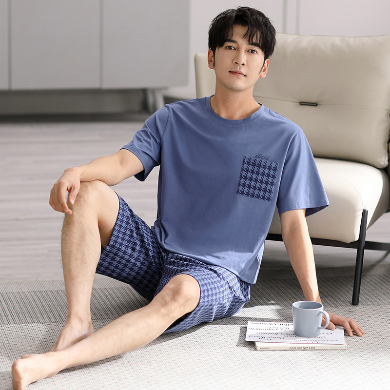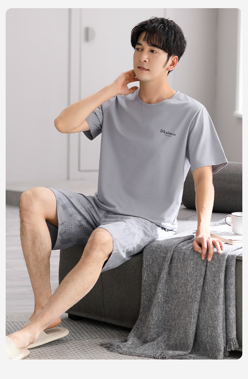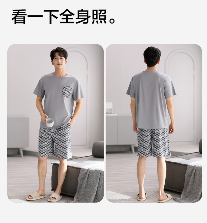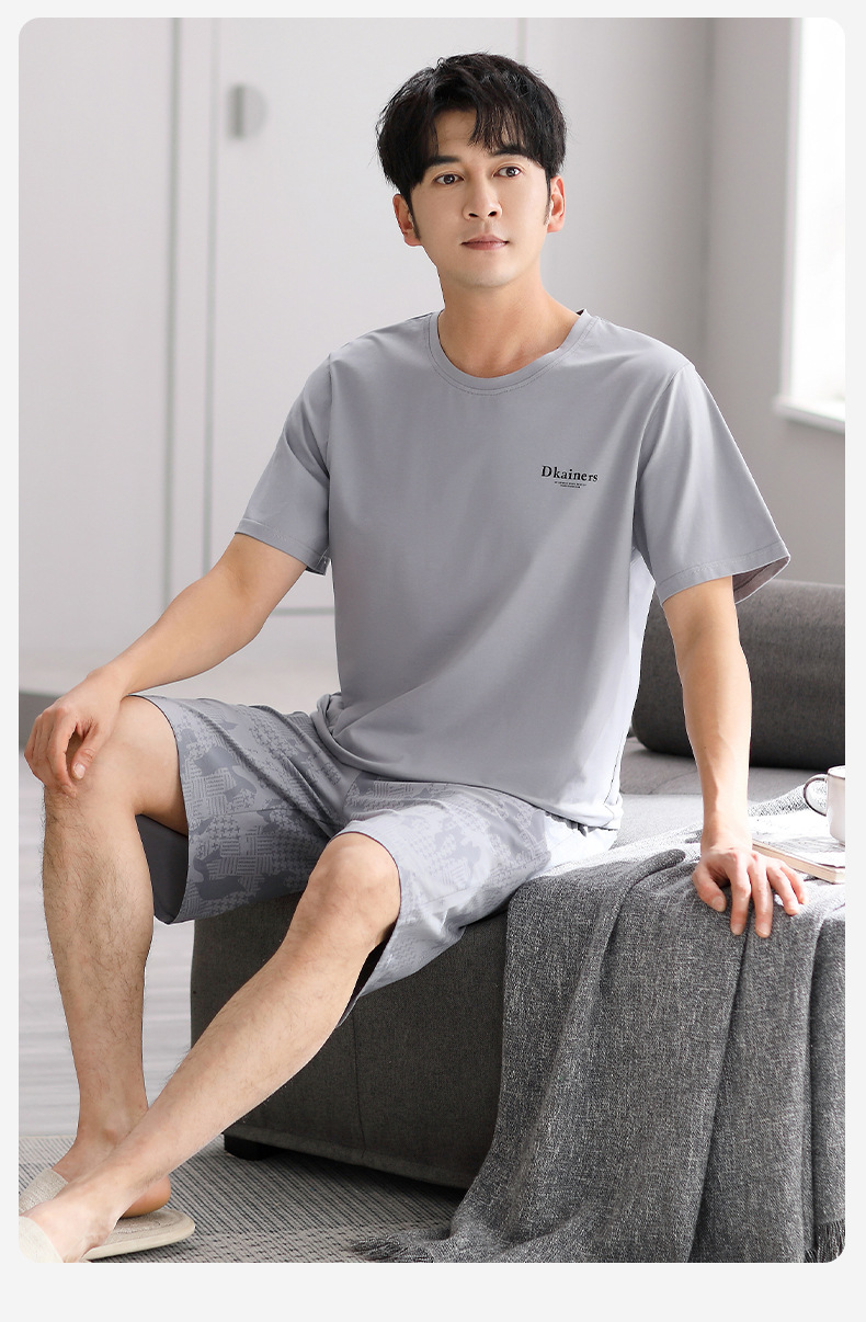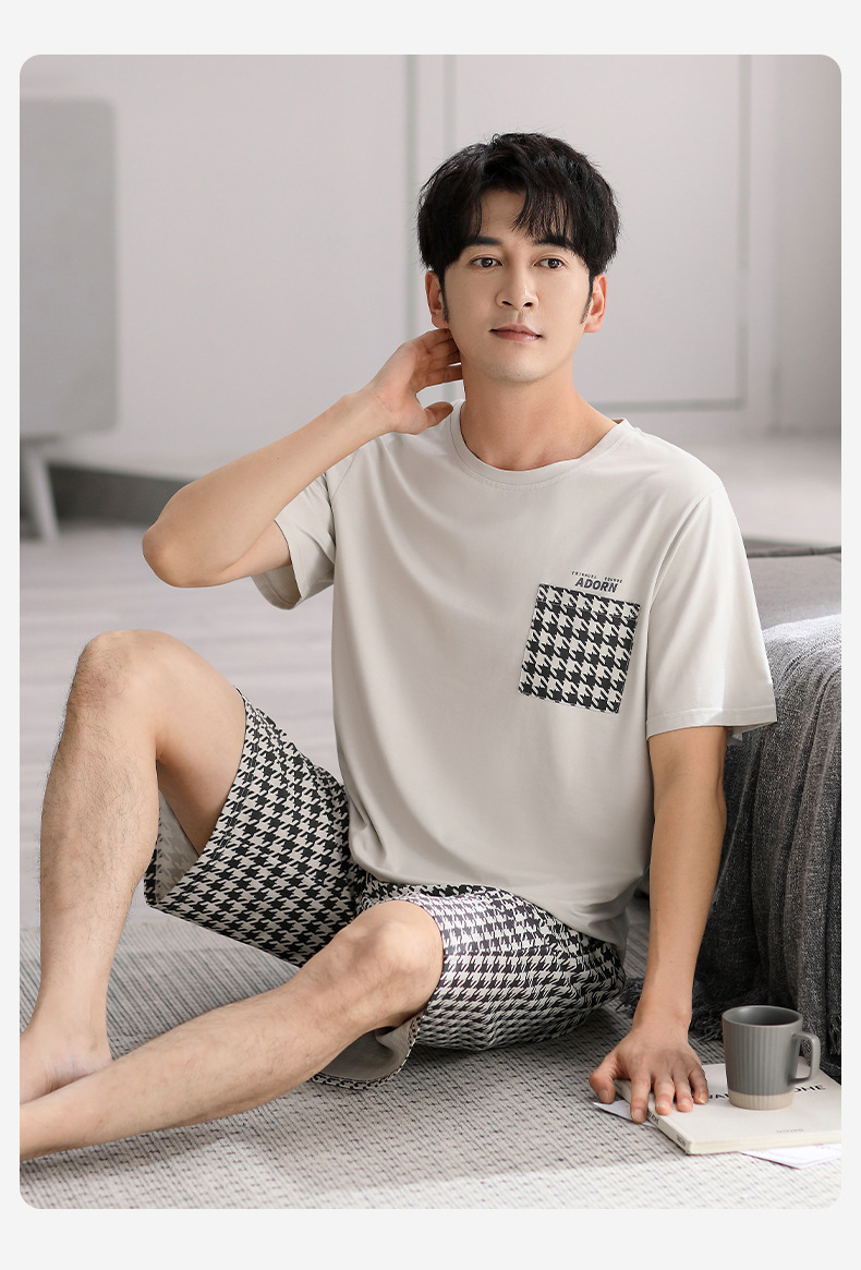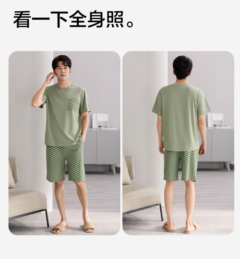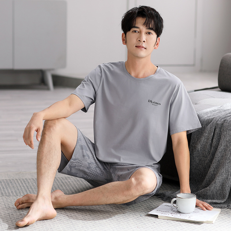시원한 느낌의 잠옷 남자 여름 모달 코튼 실크 반팔 반바지 홈 옷 남자 여름 얇은 아이스 실크 세트스토어 가기