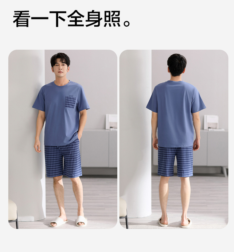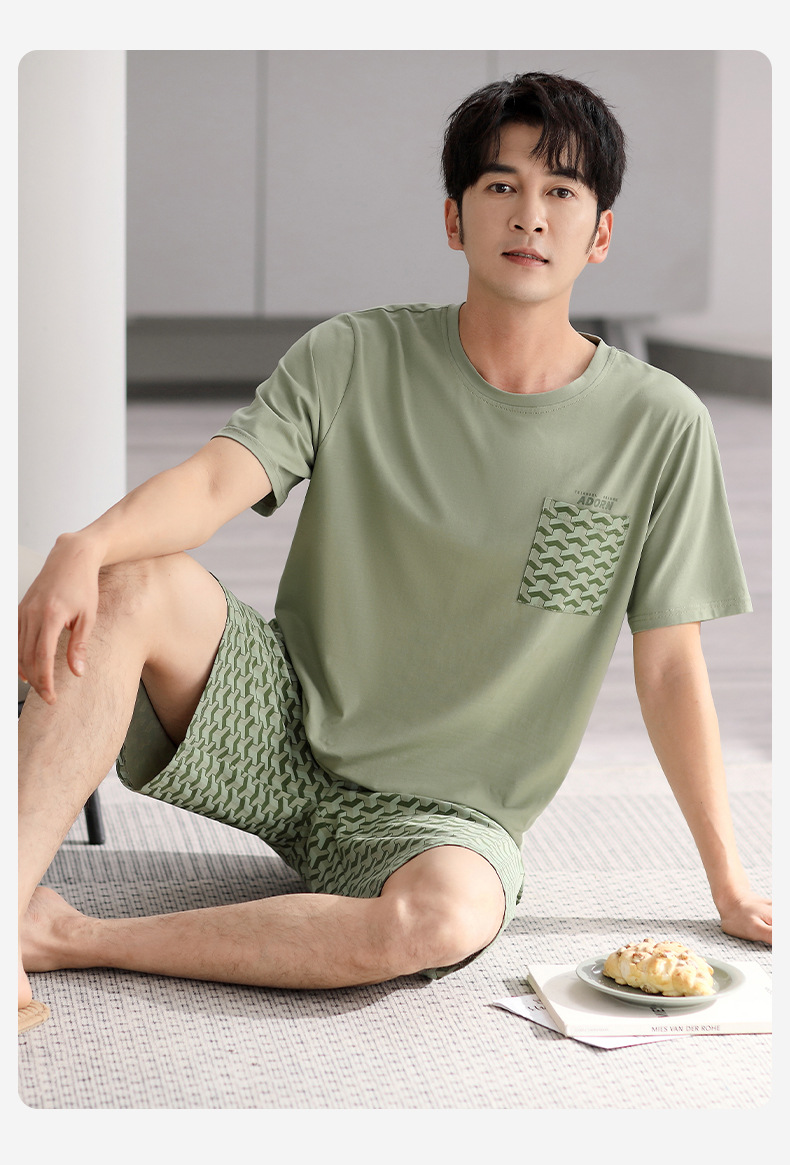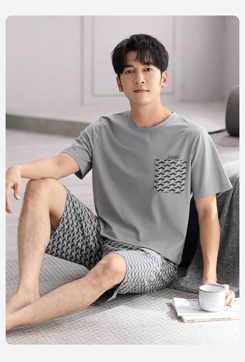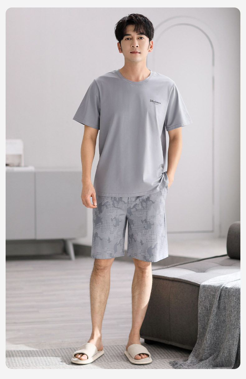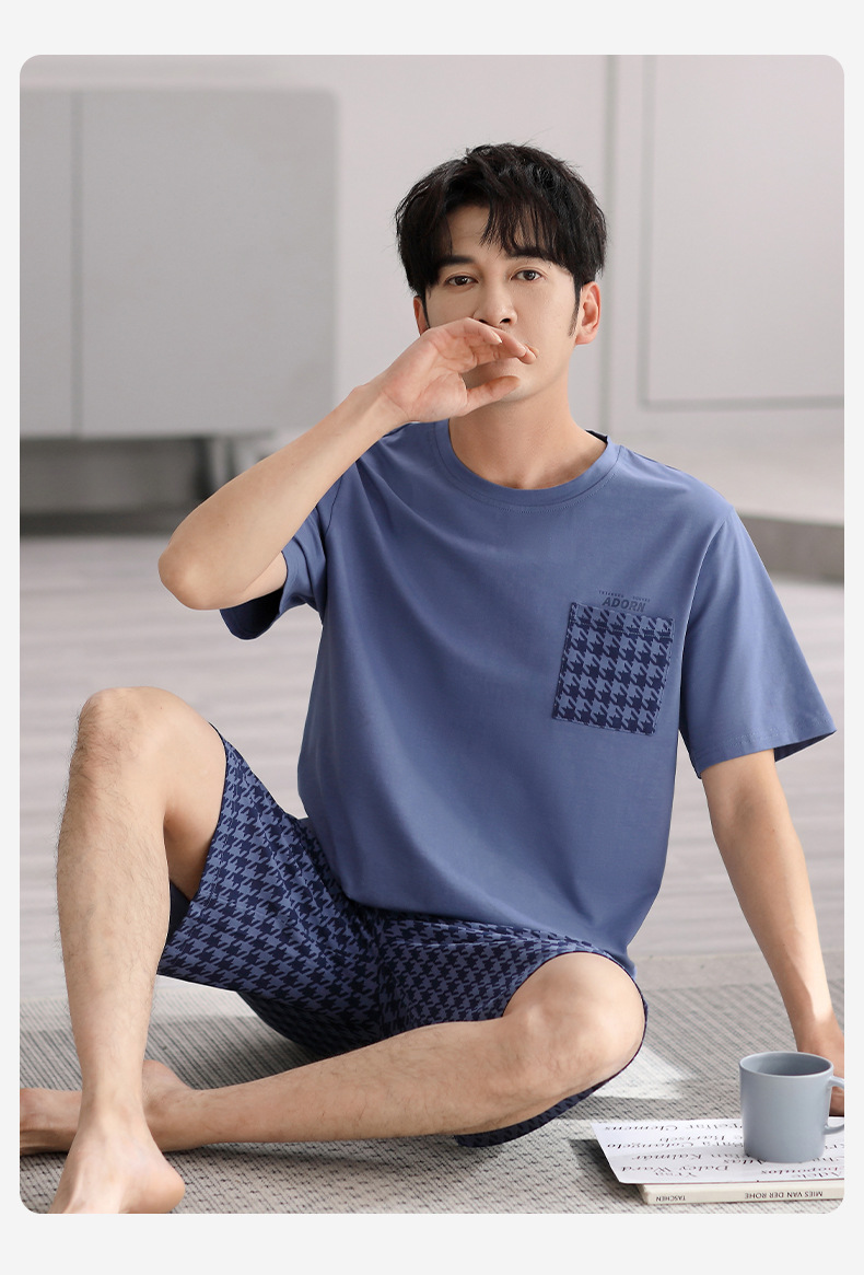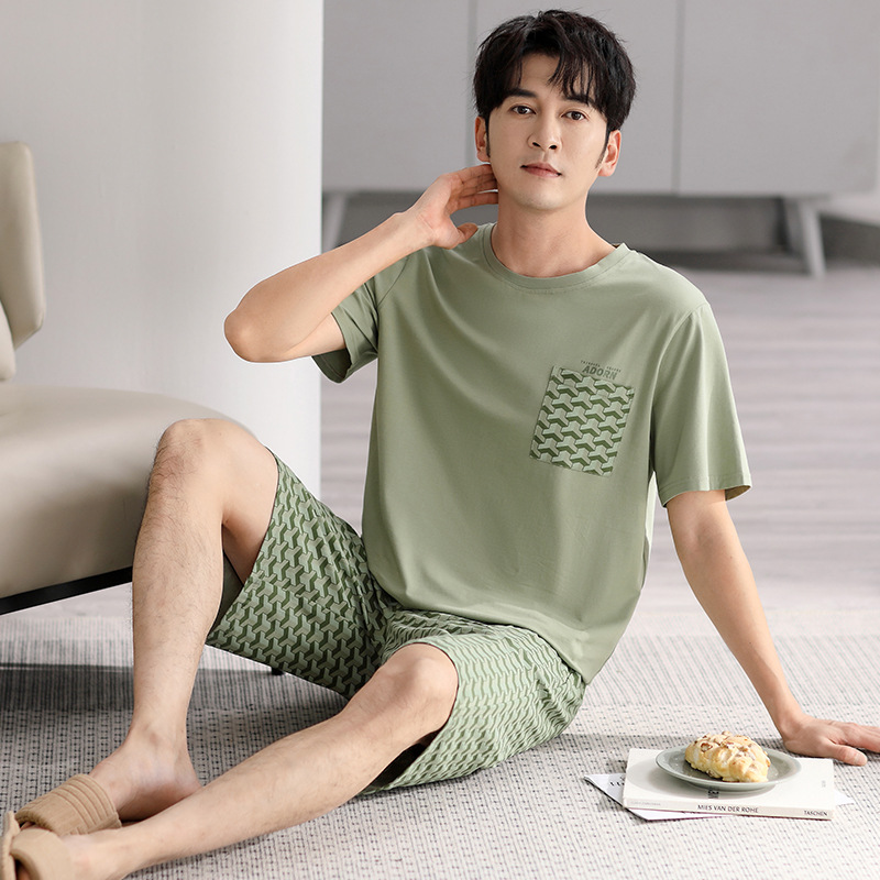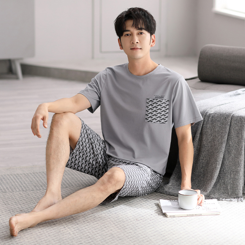 시원한 느낌의 잠옷 남자 여름 모달 코튼 실크 반팔 반바지 홈 옷 남자 여름 얇은 아이스 실크 세트스토어 가기