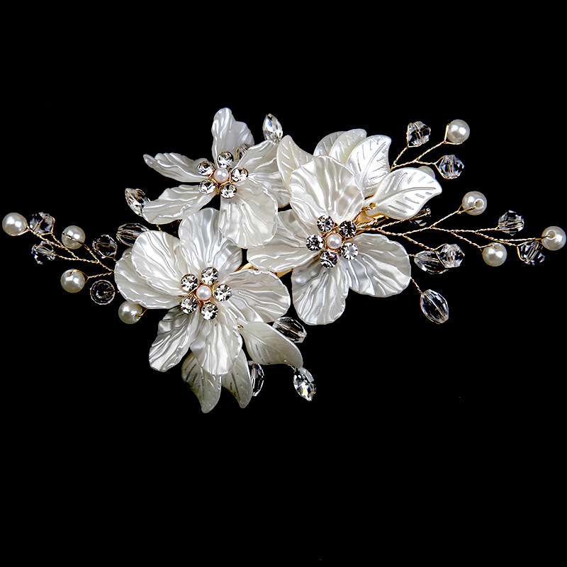 유럽과 미국의 신부 사이드 클립 크라운 머리 장식 화이트 진주 꽃 보석 진주 머리핀 AliExpress 웨딩 원피스 헤어 액세서리