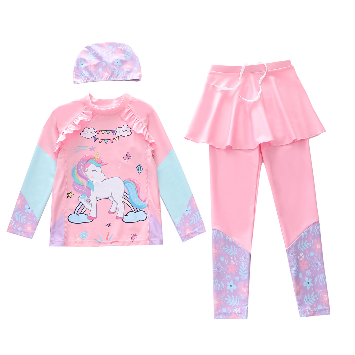 새로운 스타일의 아동 수영복, 여아용 분리형 수영복, 어린이, 중년, 노년 여아용 자외선 차단 긴팔 긴바지 스커트형 수영복