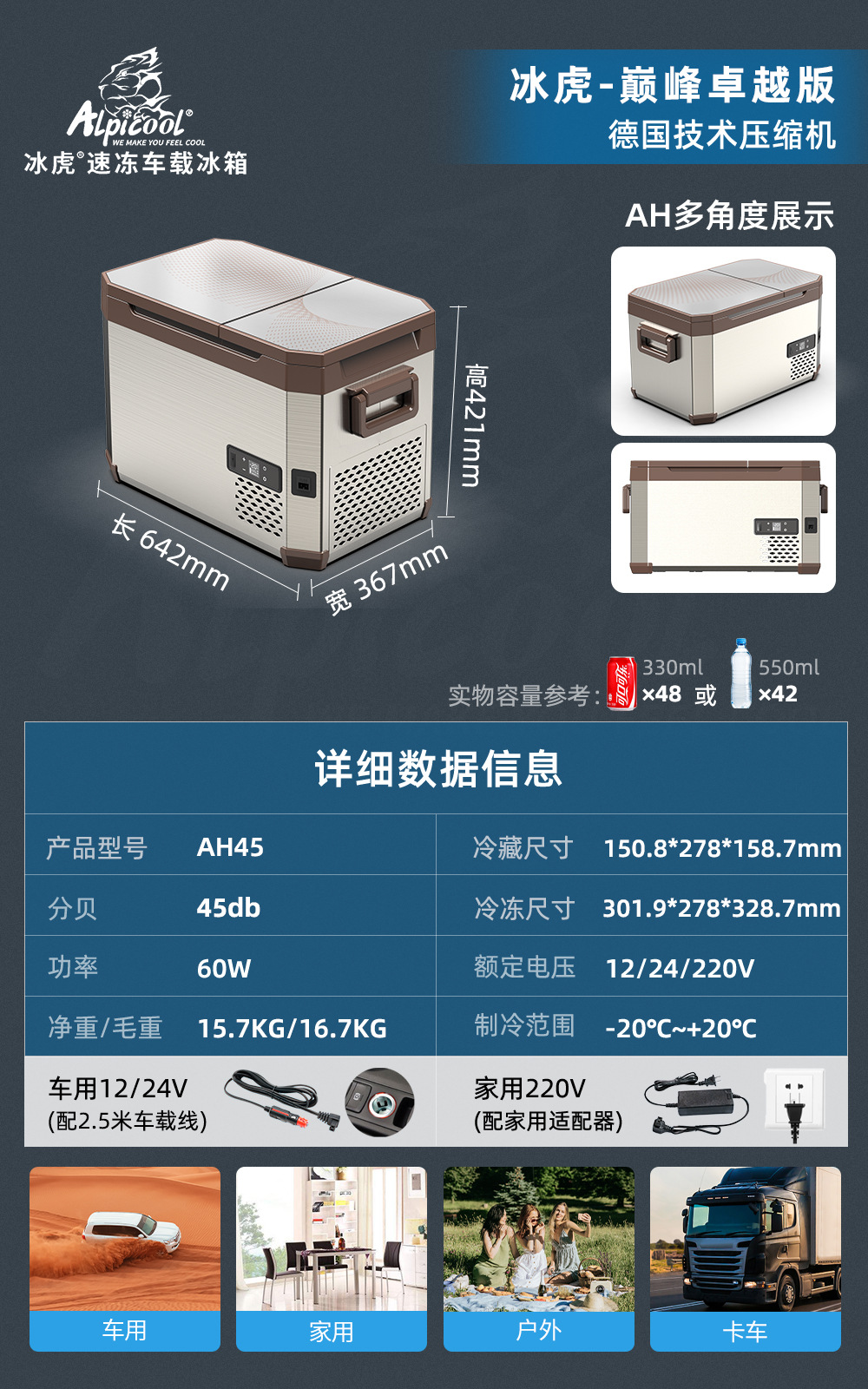 아이스 타이거 2024 더블 도어 새로운 압축기 냉장고 동결 파티션 자동차 홈 듀얼 사용 12V24V 냉장고스토어 가기