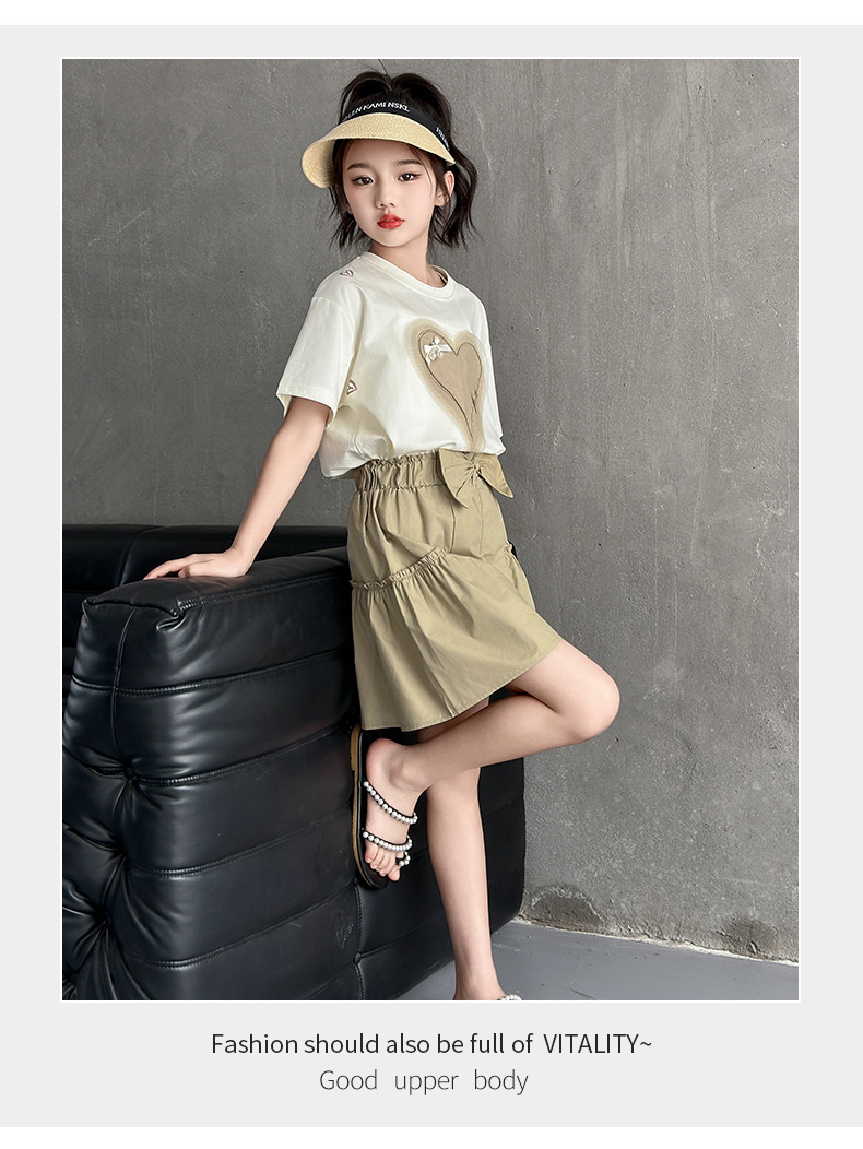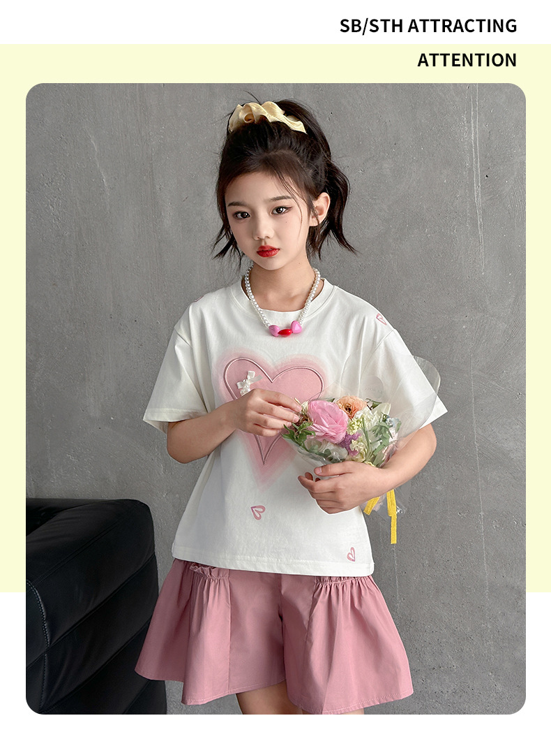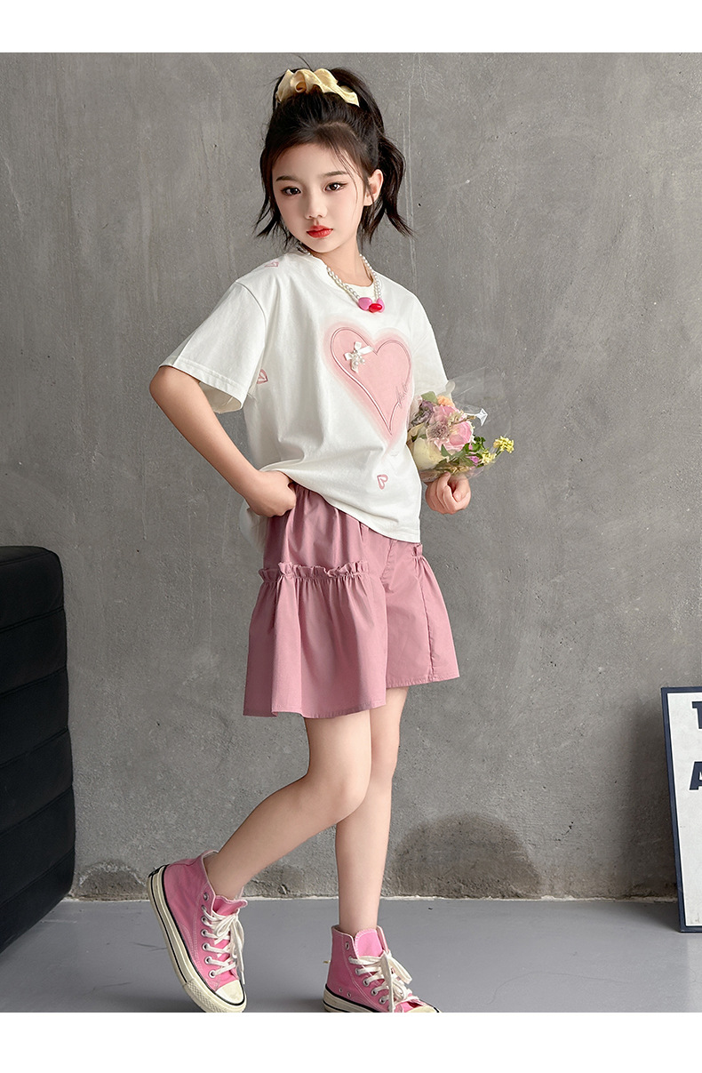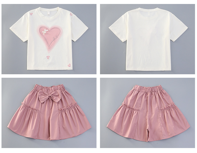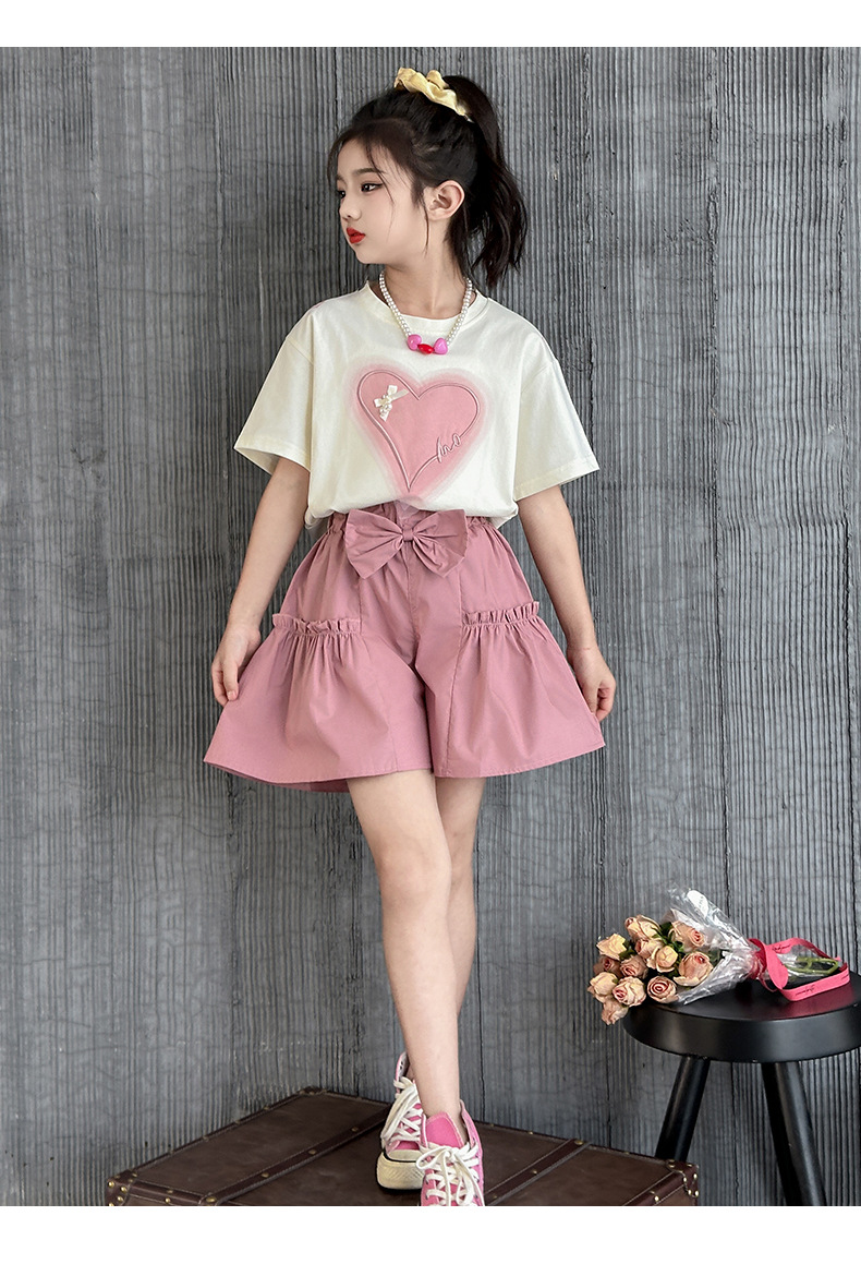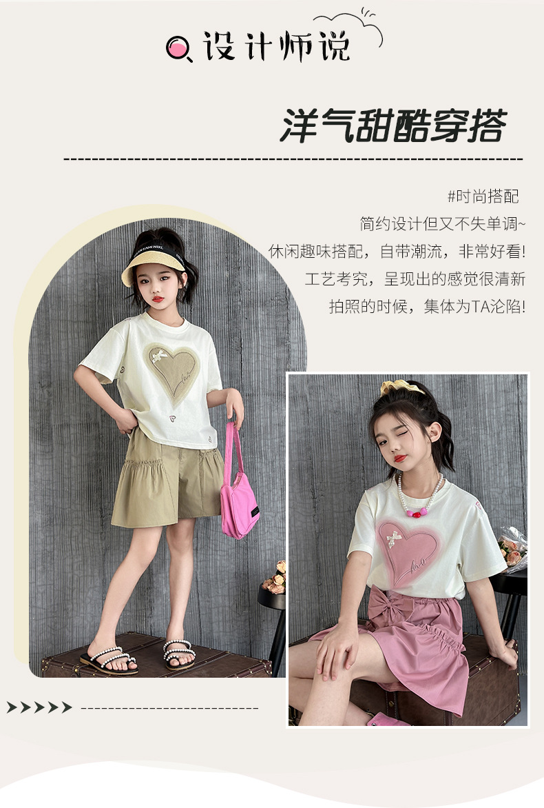 소녀 여름 반팔 세트 2024 새로운 스타일 소녀 세련된 패션 퓨어 코튼 미드 빅 어린이 여름 반바지 투피스 세트