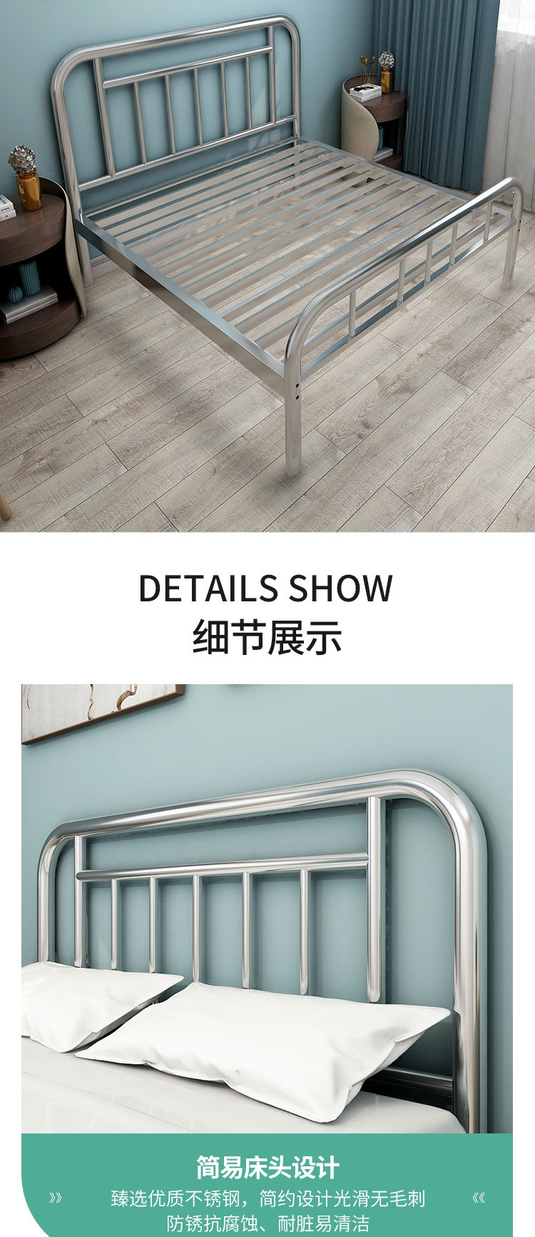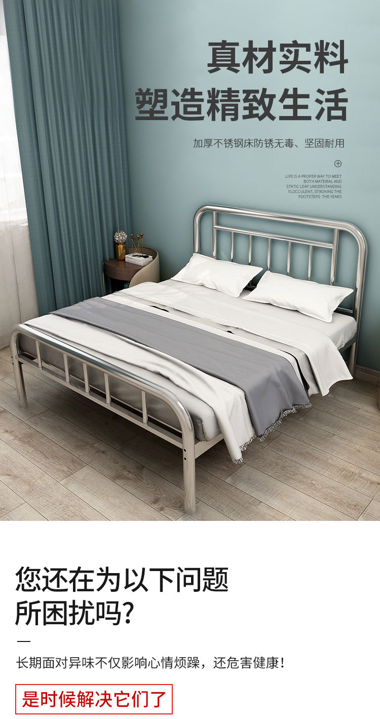 스테인리스 침대 1.8m 임대 아파트 침대 주침실 어린이 침대 스테인리스 더블 침대 침대 프레임 수면 인스 스타일스토어 가기